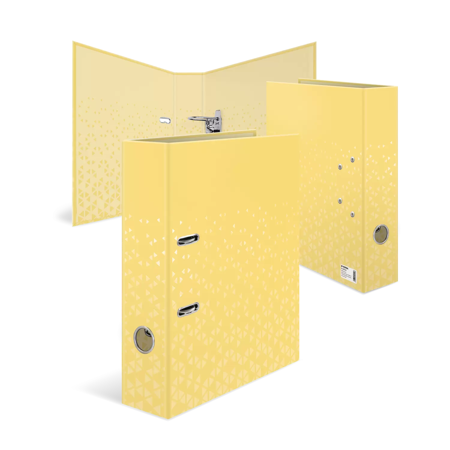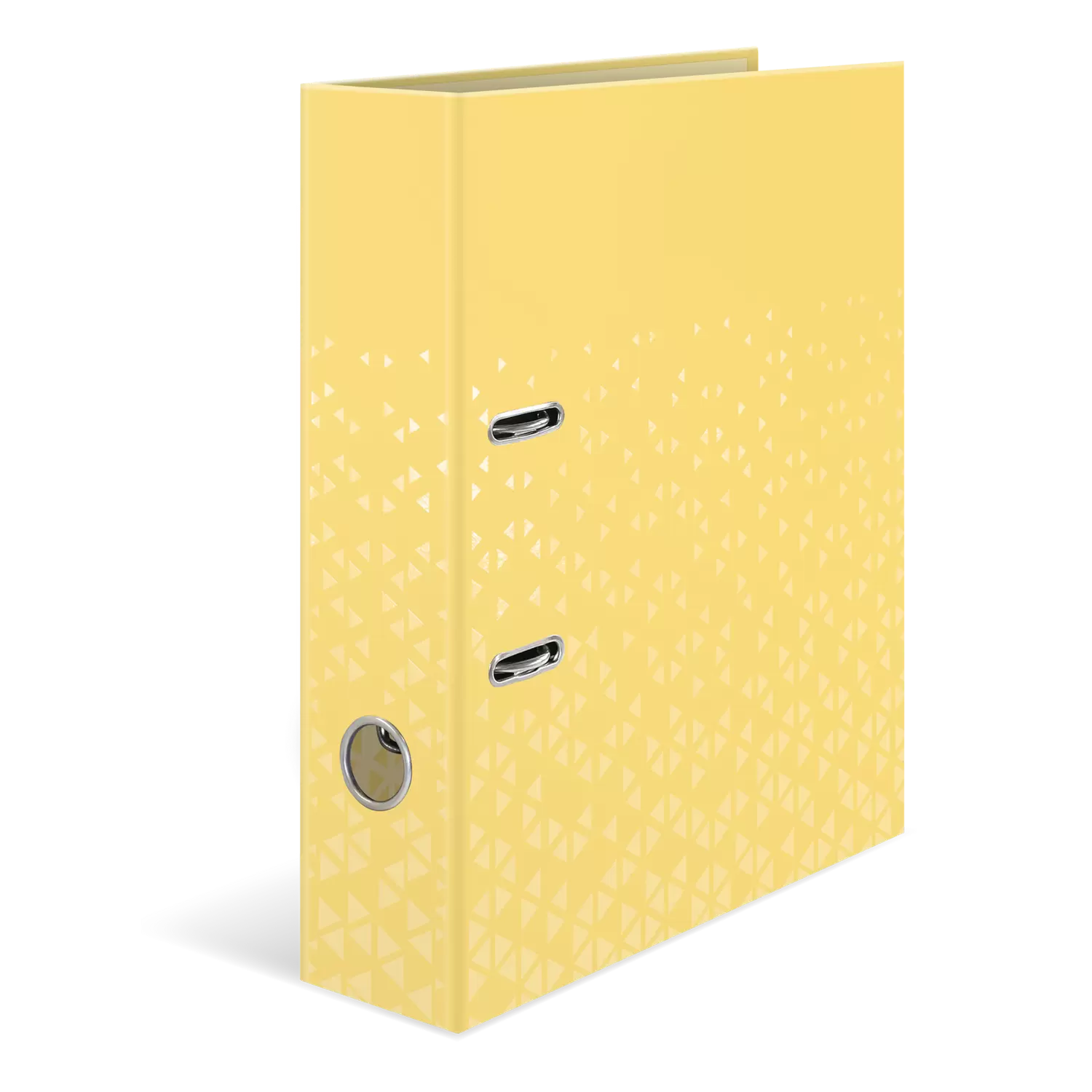 De ordner "Color" in de kleur geel voor documenten in het formaat DIN A4 is een absolute must-have voor iedereen die waarde hecht aan stijl en organisatie. Deze ordner is niet alleen functioneel, maar ook een echte blikvanger. Bijzonder is het met lak afgewerkte oppervlak, dat een uniek softtouch-gevoel geeft. Een groot aantal kleine driehoekige patronen is voorzien van hoogwaardige lak, wat de ordner een stijlvolle en moderne look verleent. Naast het uiterlijke aspect overtuigt de ordner ook door zijn praktische eigenschappen. Hij biedt voldoende plek voor documenten in DIN A4-formaat en zorgt ervoor dat deze veilig en geordend kunnen worden bewaard. Dankzij het zeer stevige materiaal heeft de ordner een lange levensduur en kan tegen een stootje.