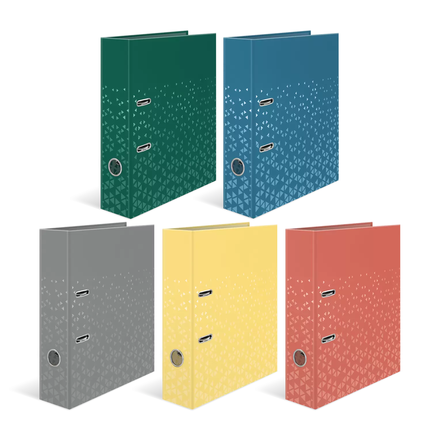 De ordner "Color" in de kleur grijs voor documenten in het formaat DIN A4 is een absolute must-have voor iedereen die waarde hecht aan stijl en organisatie. Deze ordner is niet alleen functioneel, maar ook een echte blikvanger. Bijzonder is het met lak afgewerkte oppervlak, dat een uniek softtouch-gevoel geeft. Een groot aantal kleine driehoekige patronen is voorzien van hoogwaardige lak, wat de ordner een stijlvolle en moderne look verleent. Naast het uiterlijke aspect overtuigt de ordner ook door zijn praktische eigenschappen. Hij biedt voldoende plek voor documenten in DIN A4-formaat en zorgt ervoor dat deze veilig en geordend kunnen worden bewaard. Dankzij het zeer stevige materiaal heeft de ordner een lange levensduur en kan tegen een stootje.