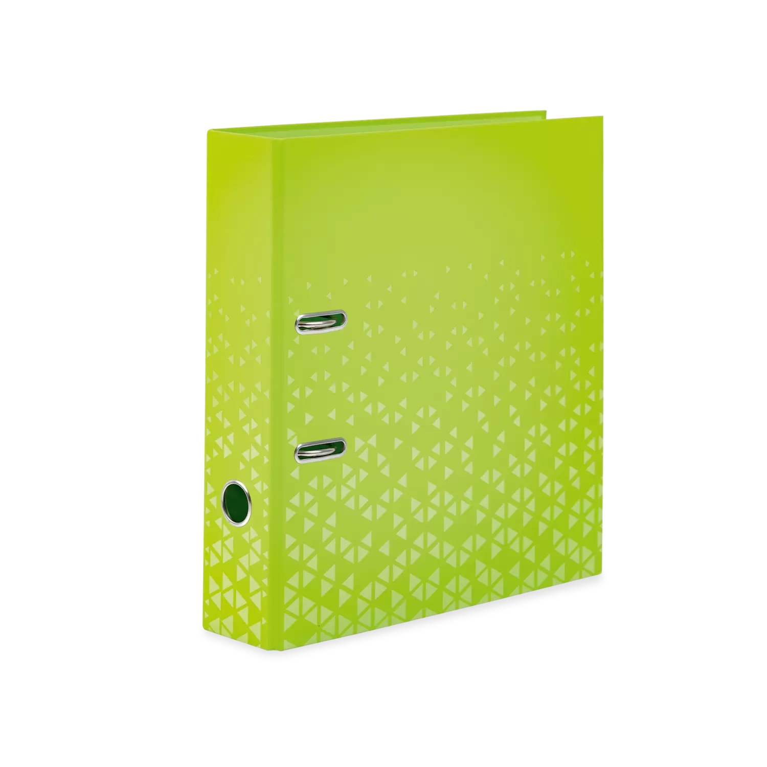 De nieuwe ordner "Color" in de kleur groen voor documenten in het formaat DIN A4 is een absolute must-have voor iedereen die waarde hecht aan stijl en organisatie. Deze ordner is niet alleen functioneel, maar ook een echte blikvanger. Bijzonder is het met lak afgewerkte oppervlak, dat een uniek softtouch-gevoel geeft. Een groot aantal kleine driehoekige patronen is voorzien van hoogwaardige lak, wat de ordner een stijlvolle en moderne look verleent. Naast het uiterlijke aspect overtuigt de ordner ook door zijn praktische eigenschappen. Hij biedt voldoende plek voor documenten in DIN A4-formaat en zorgt ervoor dat deze veilig en geordend kunnen worden bewaard. Dankzij het zeer stevige materiaal heeft de ordner een lange levensduur en kan tegen een stootje.