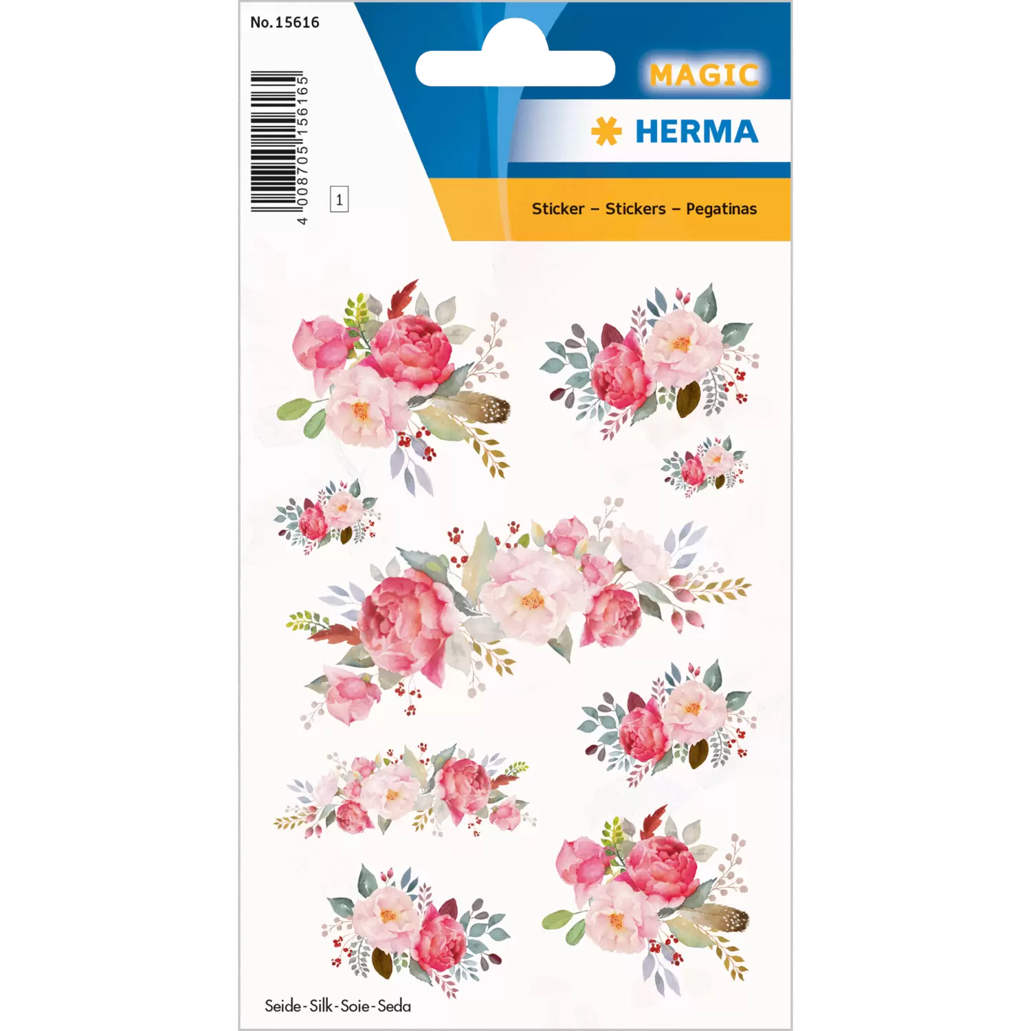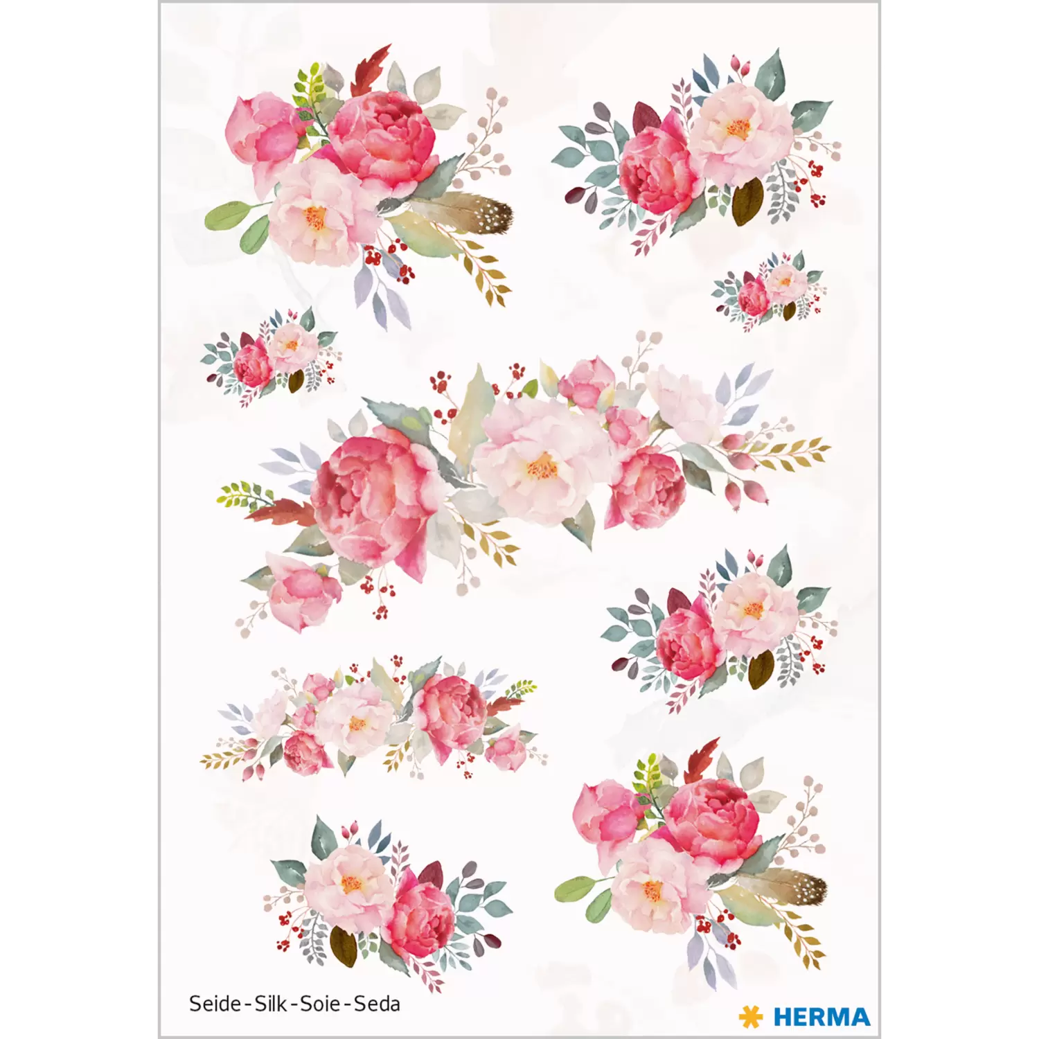 fraaie themastickers van HERMA met kleurige pioenrozen, 9 ontwerpen in verschillende maten op een vel, voor cadeaus die uit het hart komen, van glanzende zijde, laten zich eenvoudig afhalen en opplakken, voor het versieren en decoreren van cadeautjes, uitnodigingen, wenskaarten en traktaties, supergeschikt om te ruilen en te verzamelen, zelfklevend, voor echte bloemenliefhebbers