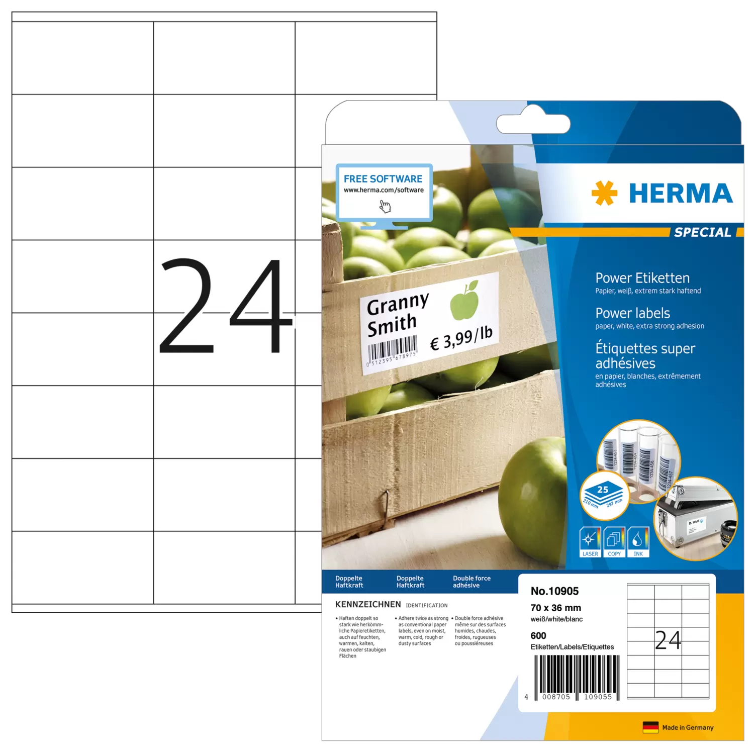 Power-etiketten, sterk hechtend, A4, 70 x 36 mm, wit, van papier
