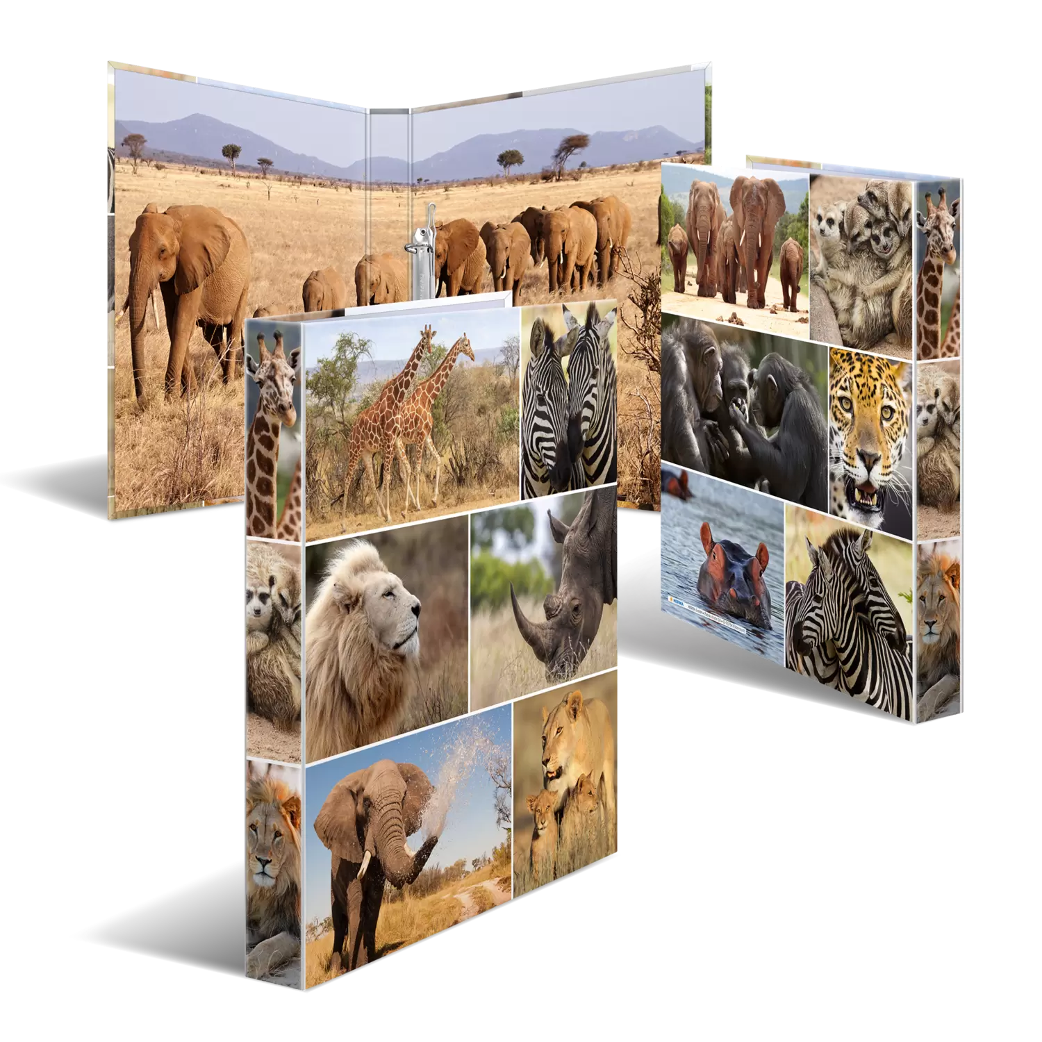 Orde moet er zijn – maar plezier ook! Wie vindt het nu echt leuk, zo'n papierbende? Precies, niemand. Maar op een gegeven moment moeten al die documenten, brieven, rekeningen en stukken nu eenmaal gesorteerd en opgeborgen worden. Met de HERMA ringmappen in praktisch formaat voor alle soorten papieren tot het formaat DIN A4 kunnen alle papieren netjes en overzichtelijk worden bewaard. Moet er een document worden opgetrommeld voor een instantie, een overheidsinstelling of de verzekering, dan is alles snel bij de hand. En ook voor de privé-genoegens zijn de mappen uitstekend geschikt: voor het verzamelen van recepten, voor de vakantieplanning of als gezinsplanner – hier vindt alles een plekje. En helemaal mooi: met de geweldige animal-designs is de mappenserie in de kast een echte blikvanger. Want orde is mooi, maar het oog wil tenslotte ook wat. Met het gloednieuwe ontwerp Afrikaanse dieren wordt het spannend! De ringmap is ontworpen met 16 prachtige dierenfoto's, waaronder giraffen, olifanten, leeuwen en stokstaartjes. Het praktische 2-rings mechaniek en de klem zorgen ervoor dat alles optimaal wordt vastgehouden.