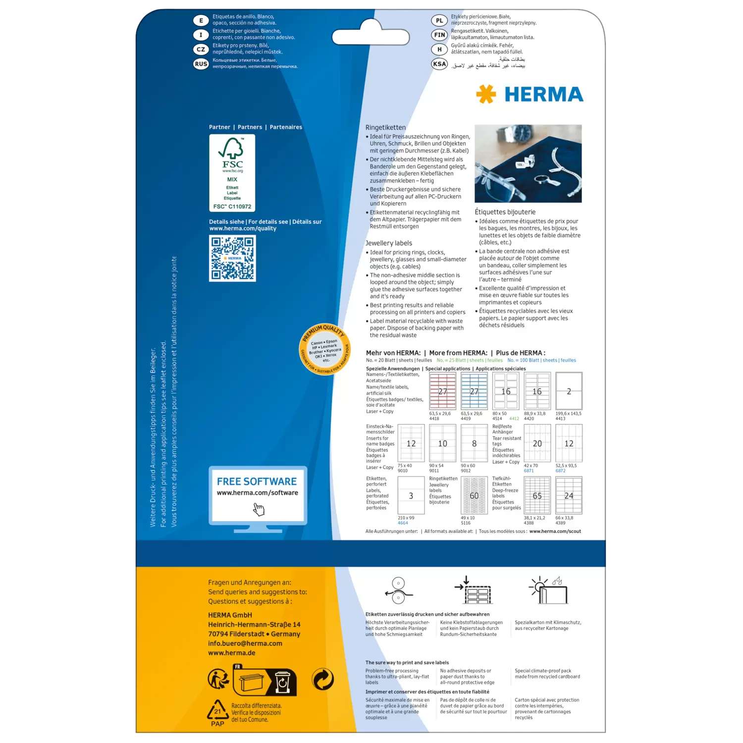Ringetiketten, A4, 49 x 10 mm, wit, ondoorzichtig, sterk hechtend