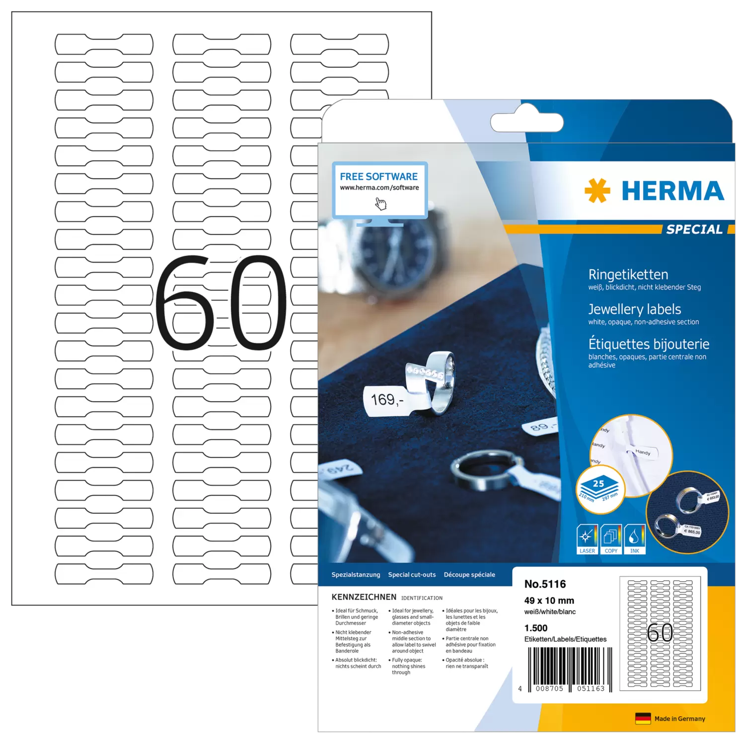- Voor het labelen van ringen, horloges, sieraden, brillen en voorwerpen met een geringe diameter, bijv. kabels en snoeren.