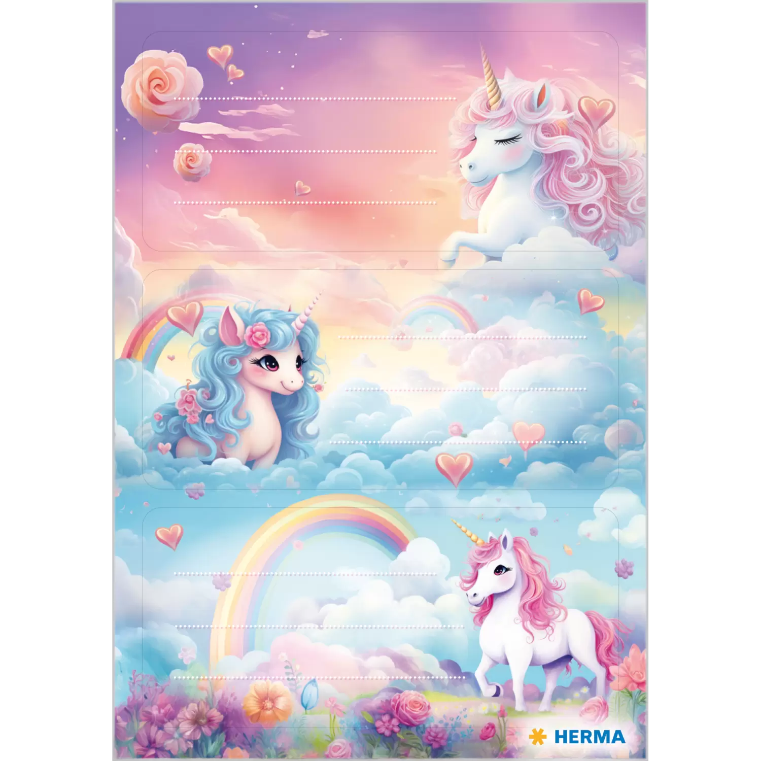 De „Happy Unicorns“ schooletiketten toveren een vleugje magie in het schoolleven van alledag van kleine eenhoorn-fans! Elke verpakking bevat negen betoverende etiketten met stralende eenhoorns, regenbogen en bloemen, die van het schooletiket meteen een blikvanger maken. De schooletiketten zijn niet alleen mooi, maar ook praktisch. Ze kunnen gemakkelijk met de hand worden beschreven, zodat elk prinsje of prinsesje de eigen naam erin kan schrijven. Ideaal voor het beschrijven van schriften, boeken en andere schoolmaterialen.
