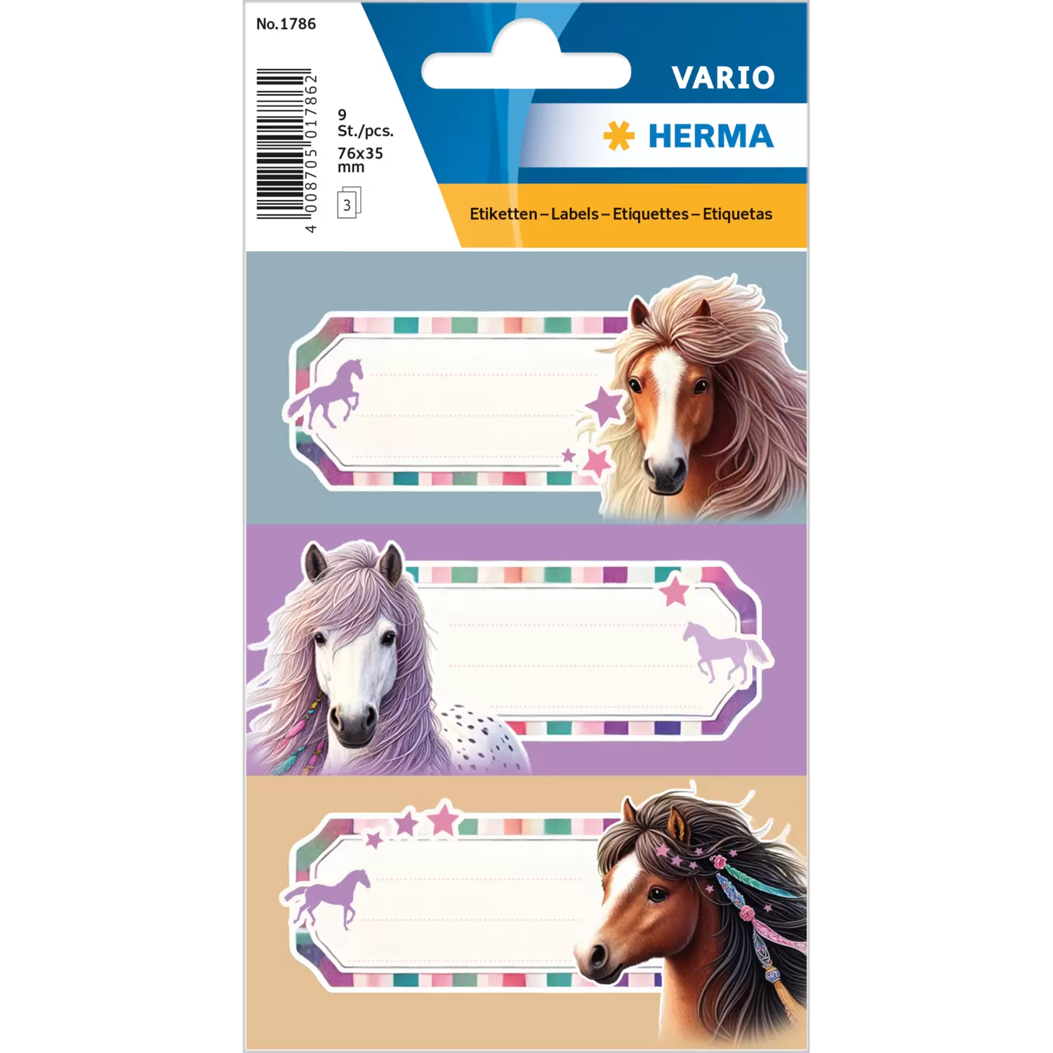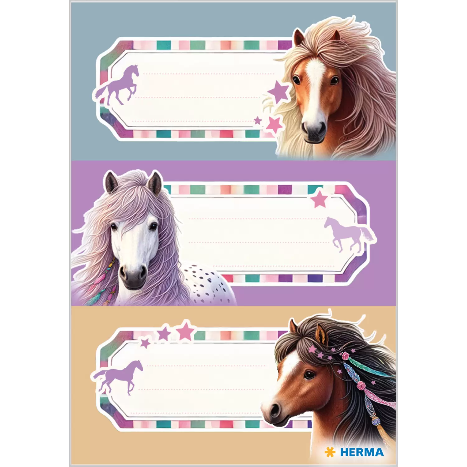 De schooletiketten "Paardenwereld" ontvoeren kleine en grote paardenfans op een betoverende reis! De prachtig getekende etiketten laten portretten zien van speels vormgegeven met golvende, ingevlochten manen, versierd met parels en kleurige linten. De delicate zachtlila tinten verlenen de motieven een harmonische sfeer en nodigen uit tot dromen. Deze etiketten zijn perfect voor het beschrijven van schriften, boeken of mappen en zijn perfect om het schoolleven van alledag op te fleuren! Ze zijn ideaal voor iedereen die de landelijke idylle en de liefde voor paarden een warm hart toedraagt. Een geweldig highlight voor het beschrijven en verfraaien van de schoolspullen!