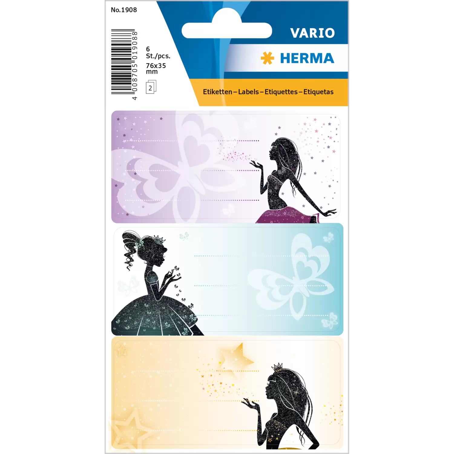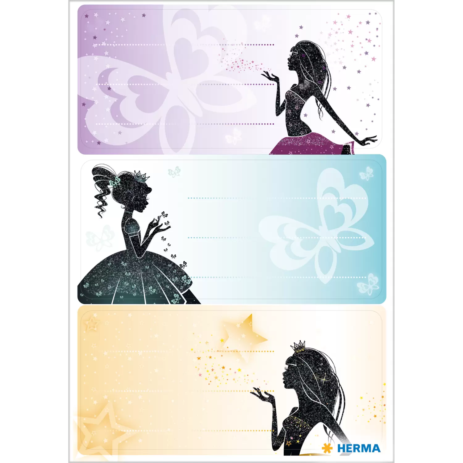Praktisch, stylish en afgewerkt met fijne glitter: ideaal voor alle prinsessen-fans! Deze fraaie vormgegeven schooletiketten met het motief ‘Princess’ in het formaat 76x35 mm zijn zowel fraai als functioneel. Eenvoudig de zelfklevende papieren stickers snel en simpel met de hand beschrijven, van het rugpapier verwijderen, opplakken – klaar. Zo kan er op school, in de crèche en onder vrienden geen boek en schrift meer worden verwisseld.