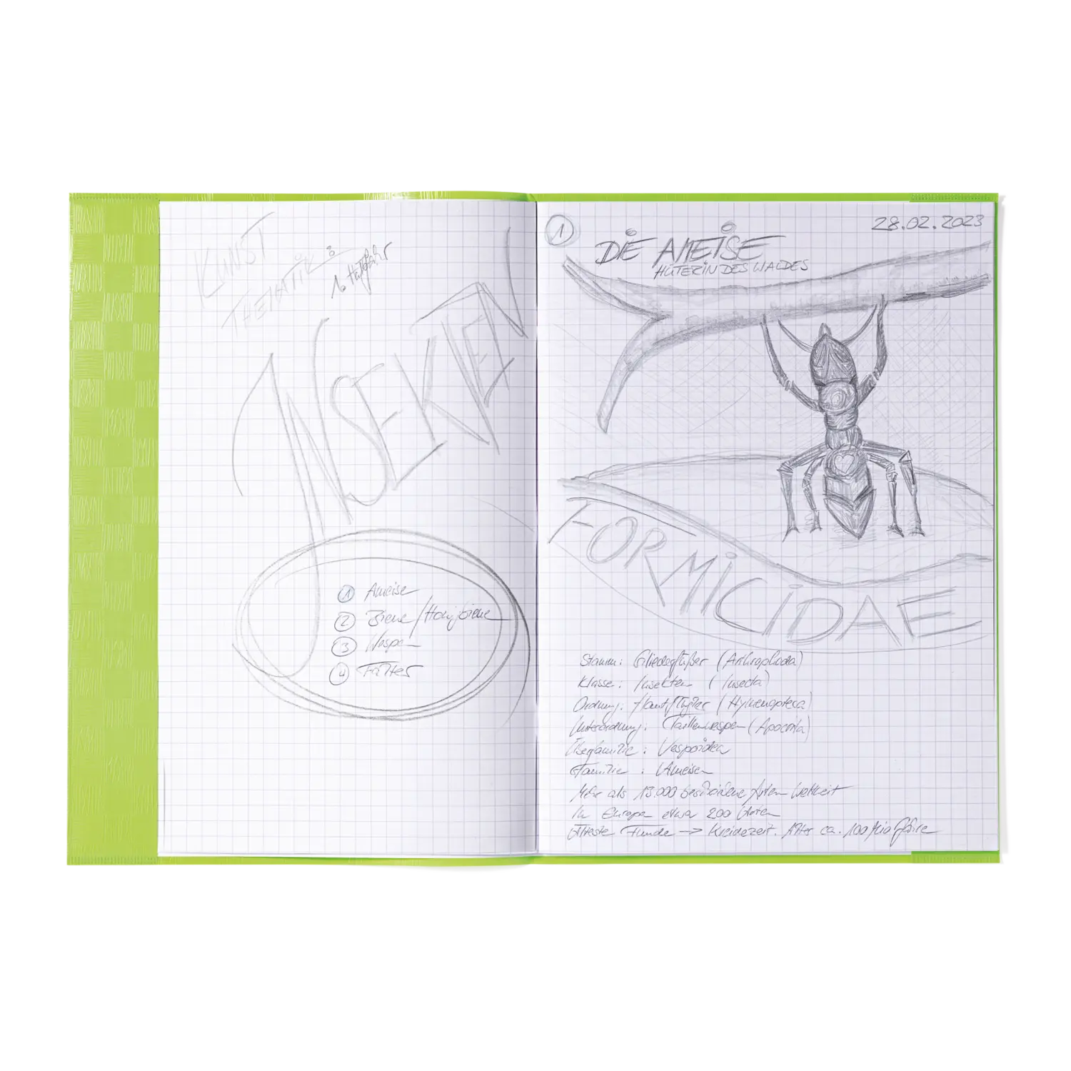 Schriftkaften van PP folie, met structuurpräging, solide verwerkt, met etiket.