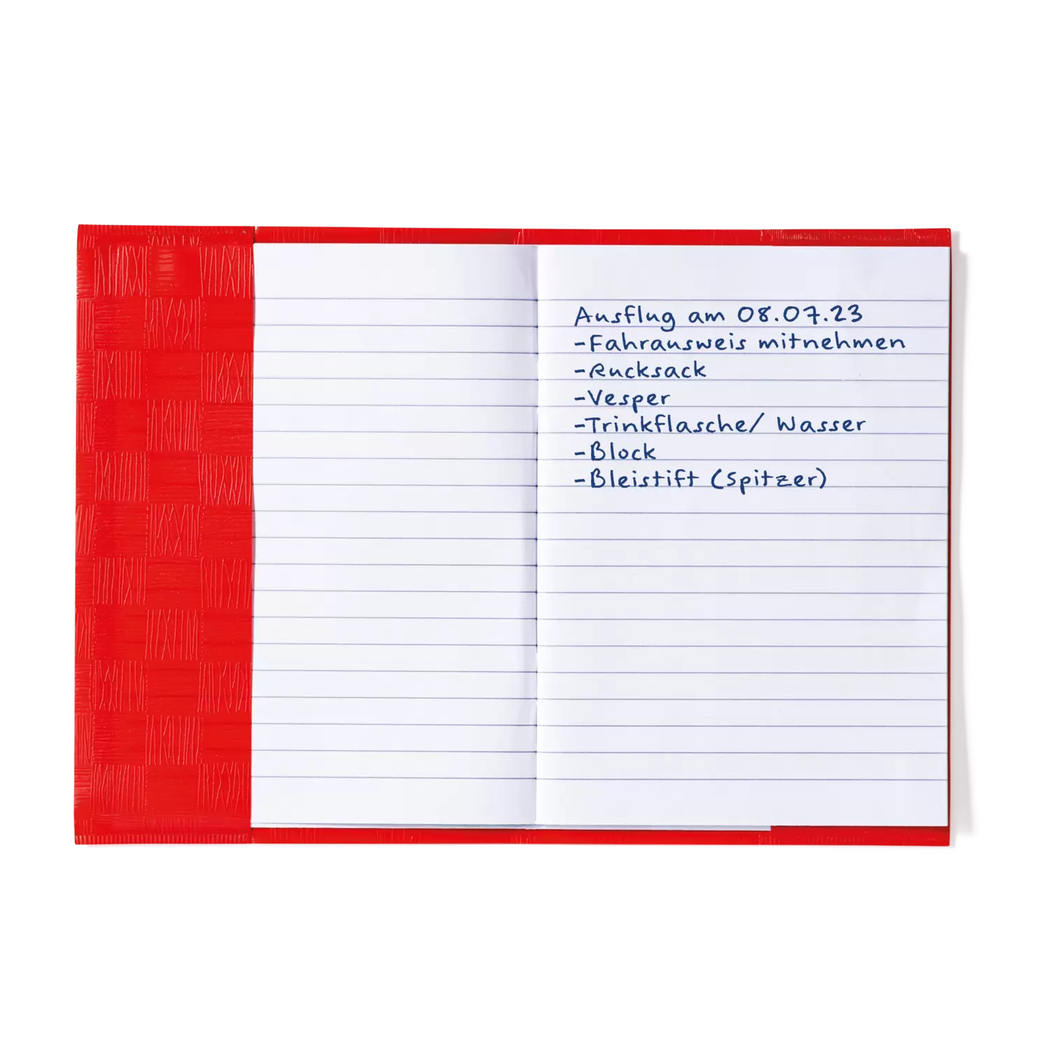 Schriftkaften van PP folie, met structuurpräging, solide verwerkt, met etiket.