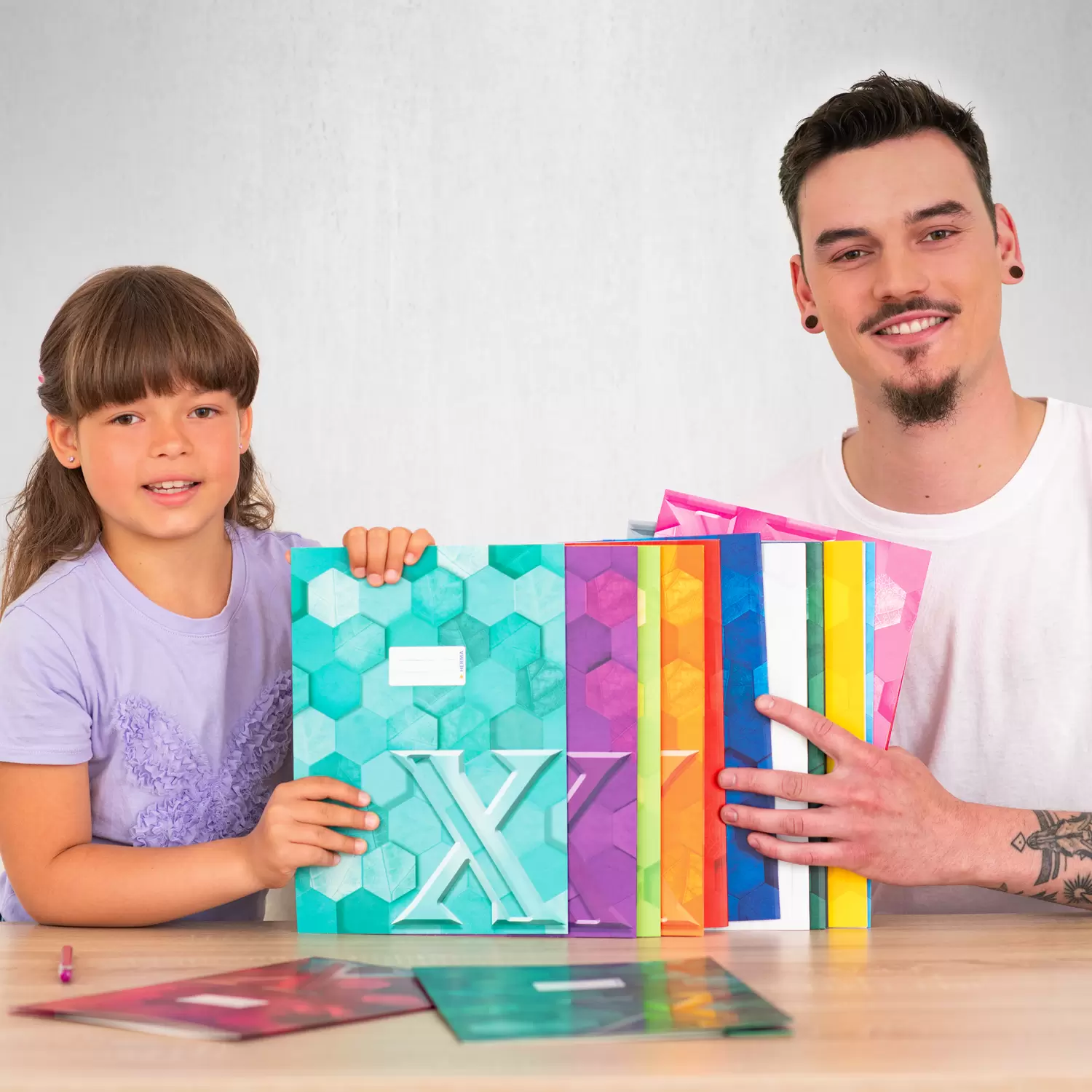 De HERMA kaft X van robuust karton is uniek en mysterieus. Staat de fraai gestileerde X aan de voorkant voor de variabele in de wiskunde, als code voor een geheim, voor het creatieve element, of als onbekende voor de inhoud van het te beschermen schrift of boekje? De kaft van de serie X is niet alleen maar een simpele beschermhoes, maar ook de toegang tot een wereld vol avonturen en geheimen, mystiek en divers. Deze lichtblauwe kaft X heeft het formaat DIN A4 en is versierd met kunstige hexagonen, die gevuld zijn met fijne bladstructuren en zo een fascinerende organische structuur creëren. De uitstraling van het coole design met de fraai gestileerde X ontketent je creativiteit en helpt je gedachten spelenderwijs op papier te zetten. Of het nu op school is, tijdens de studie of in de vrije tijd – deze kaft is de perfecte uitkomst voor iedereen die op zoek is naar iets bijzonders: De nieuwe serie X.