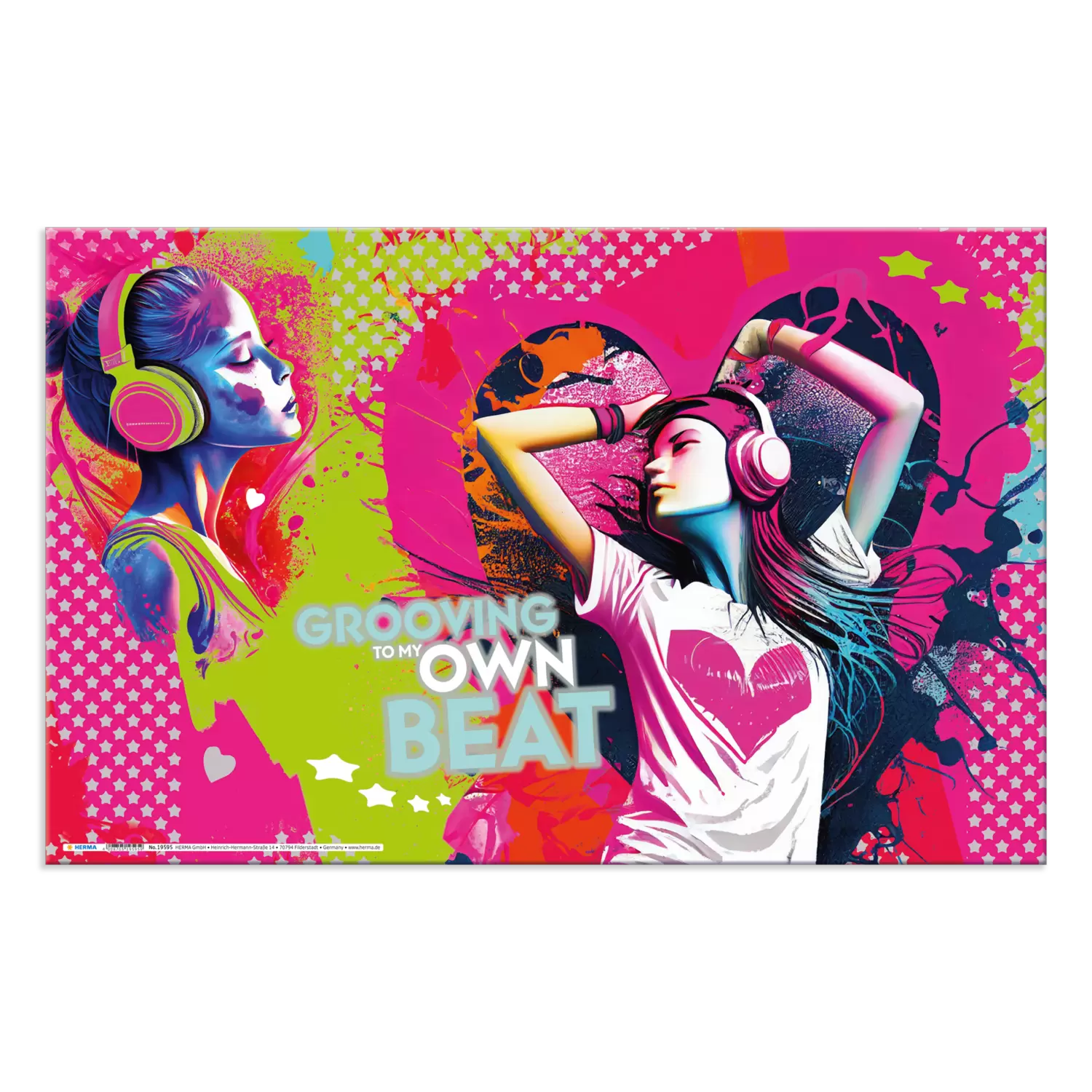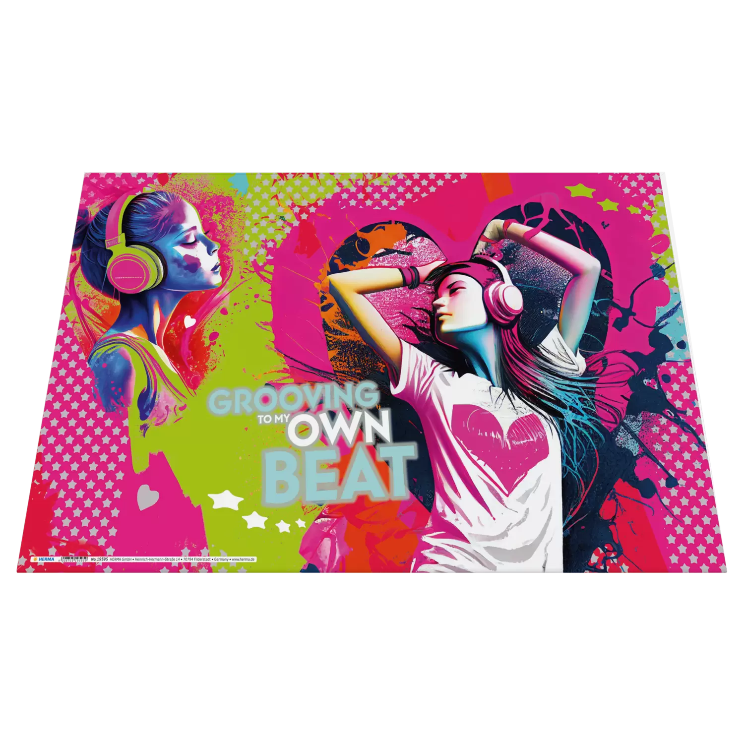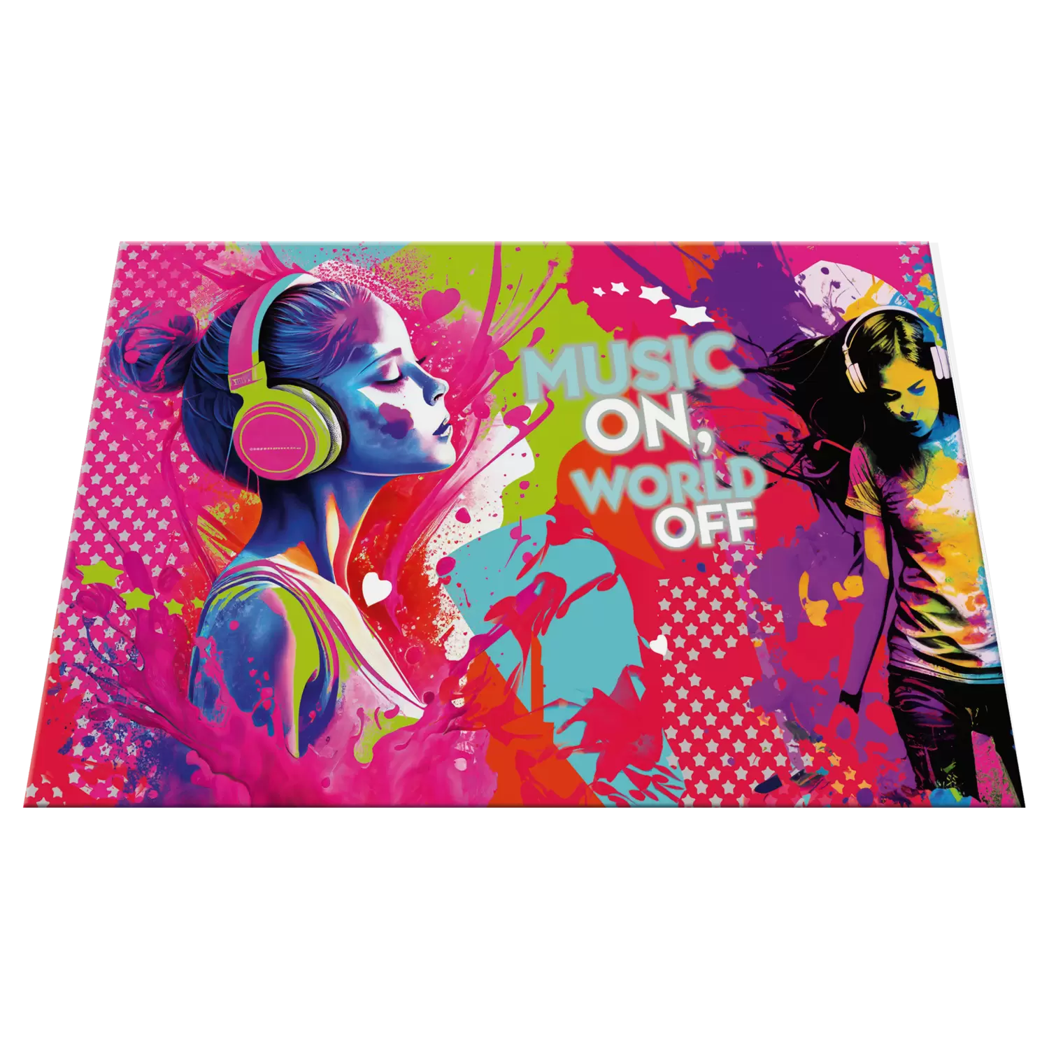 - Kleurrijke schrijfonderlegger met kleurrijk motief 'Music Girl' en softtouch-oppervlak