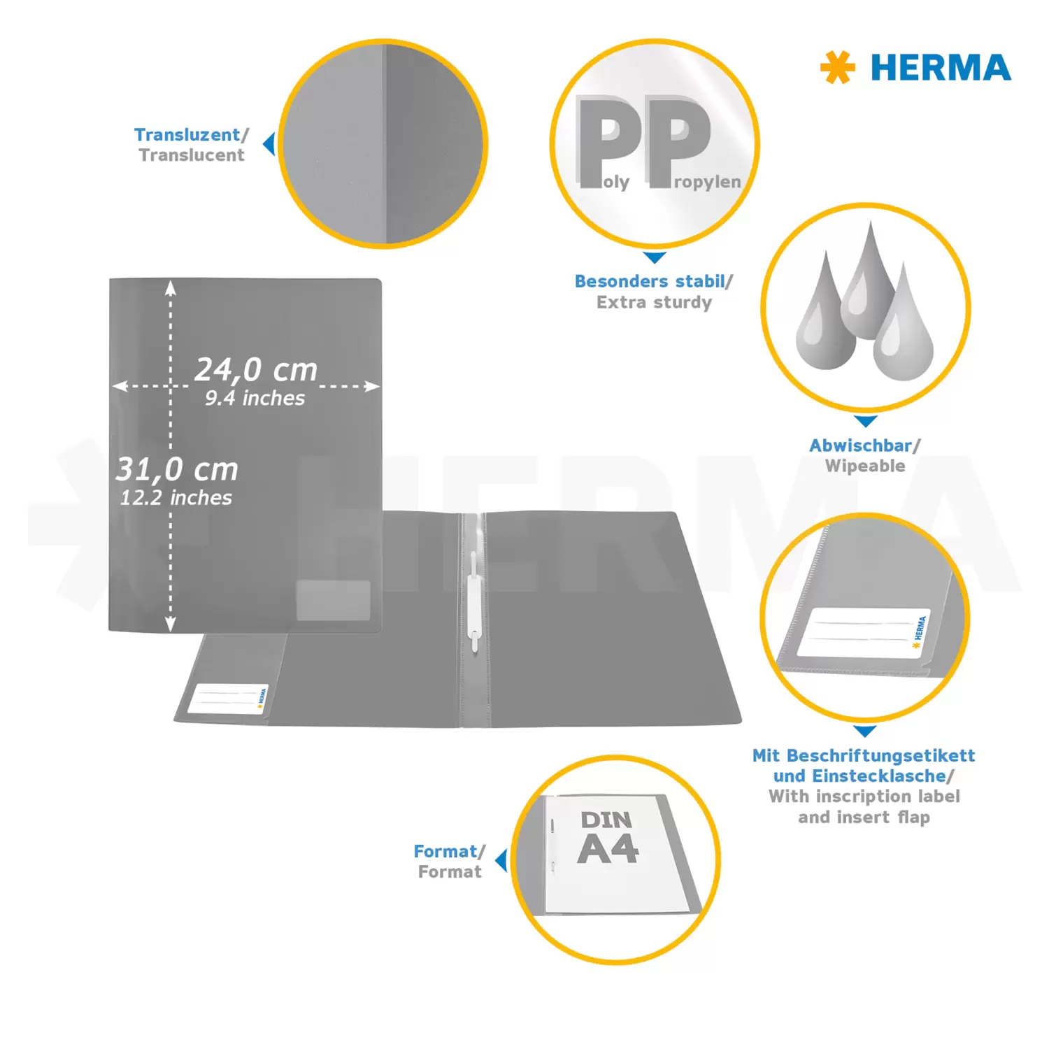 - Snelhechters voor A4 van milieuvriendelijk, sterk doorschijnend polypropyleen-folie met metalen klem, in 14 kleuren, met opschriftetiket en steekvak