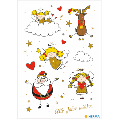 Een schattige engel, een snoezig rendier en een vrolijke Kerstman – met hun kinderlijke charme bekoren deze stickers groot en klein. Daarbij komt de stijlvolle afwerking door het glans-effect, zodat alles glimt en glittert in een heerlijke kerstsfeer.