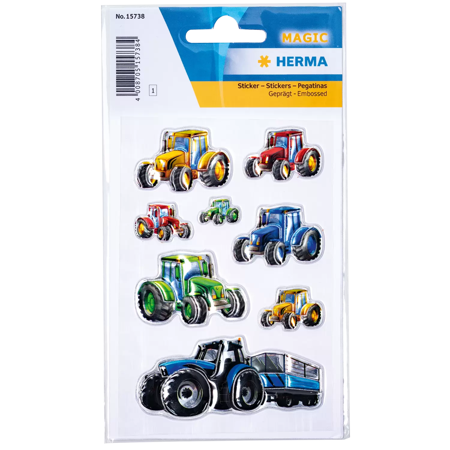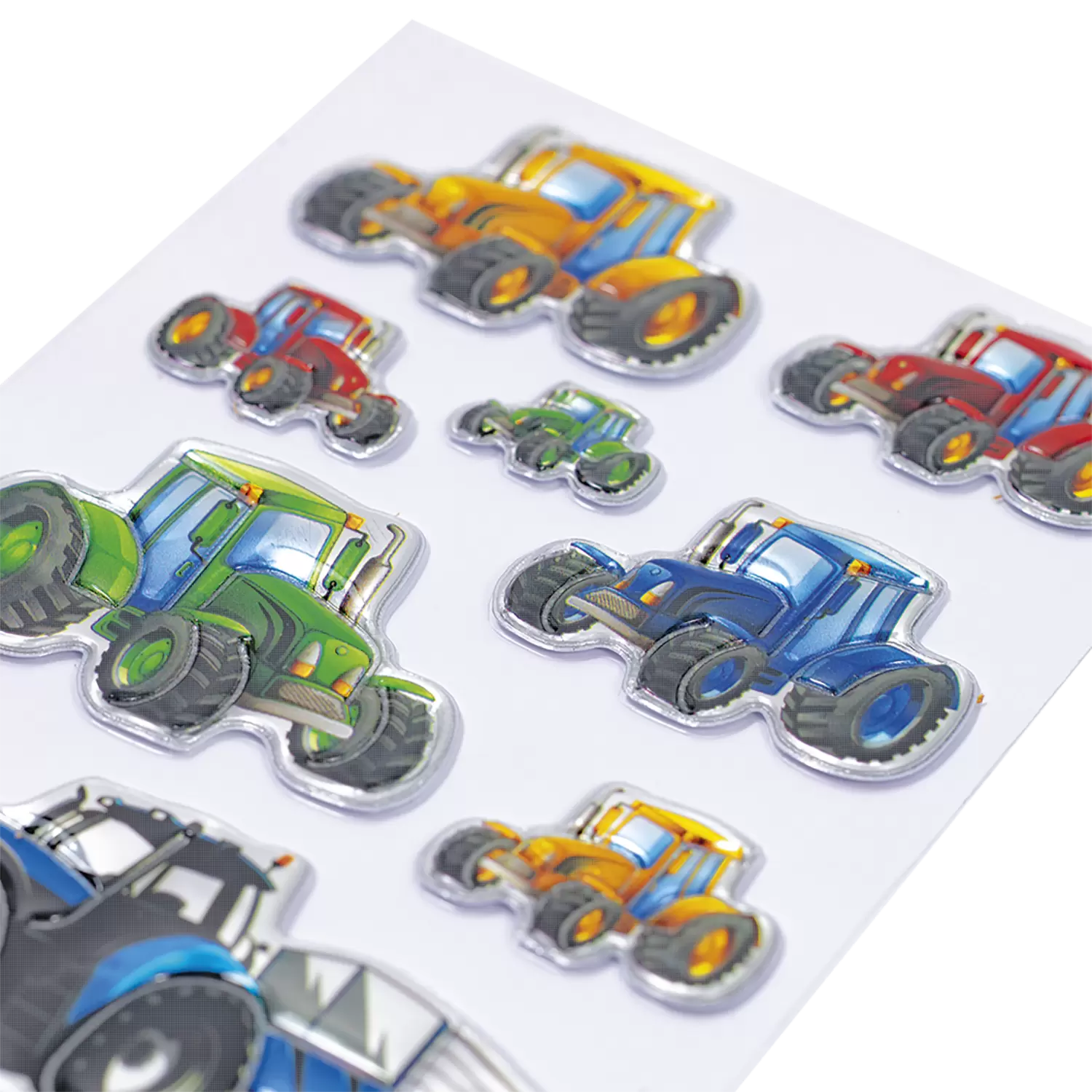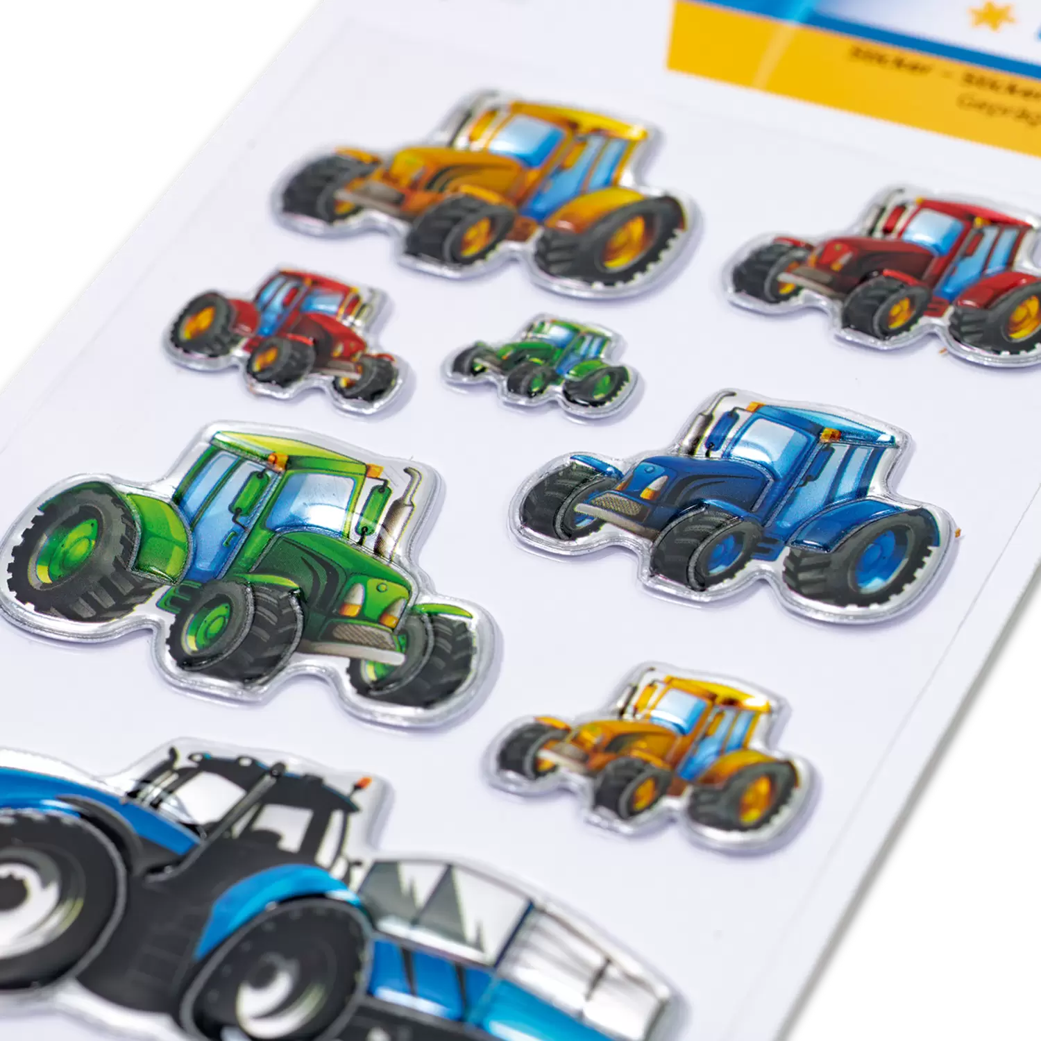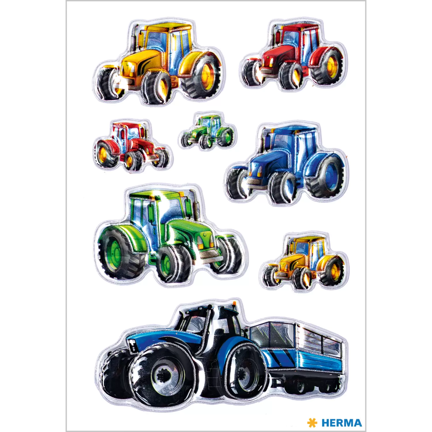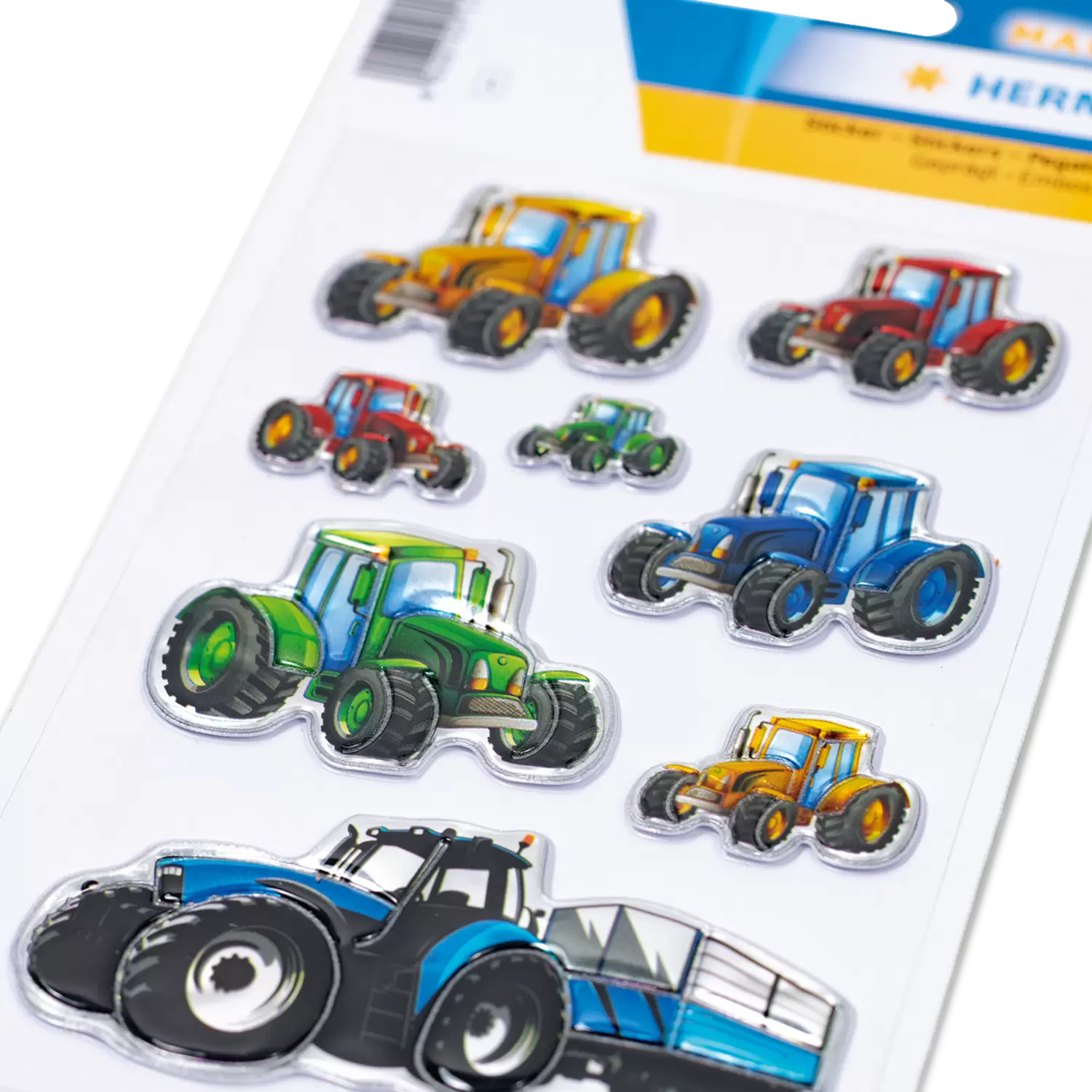 Op de velden zijn ze thuis – de ronkende tractoren! Deze prachtig ontworpen stickers van stevige transpuffy-folie met verschillende tractoren zijn perfect geschikt om te verfraaien en te versieren. De stickers zijn permanent hechtend en zelfklevend op nagenoeg alle oppervlakken. Ze kunnen er heel gemakkelijk van worden verwijderd en naar believen opnieuw worden opgeplakt. Ideaal als versiering voor schriften, ordners en mappen, om te knutselen of om te verzamelen en te ruilen.