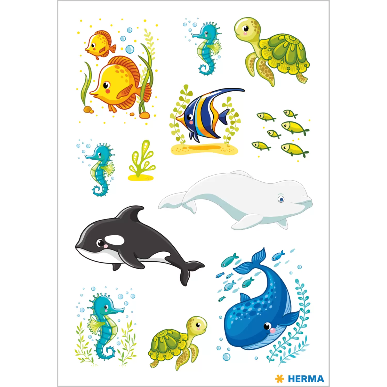 In de grote wijde zee, daar dartelen heel wat geinige gasten. Kleurrijke vissen, schildpadden, zeepaardjes en de zingende reuzen van de diepte: de walvissen! Deze prachtig vormgegeven stickers met onderwatermotieven zijn perfect geschikt om te verfraaien en te versieren. Elke verpakking bevat 3 stickervellen met elk 12 stickers. De stickers zijn gemaakt van hoogwaardig papier, permanent hechtend en zelfklevend op nagenoeg alle oppervlakken. Ze kunnen er heel gemakkelijk van worden verwijderd en naar believen opnieuw worden opgeplakt. Ideaal als versiering voor schriften, ordners en mappen, om te knutselen of voor sparen en ruilen.