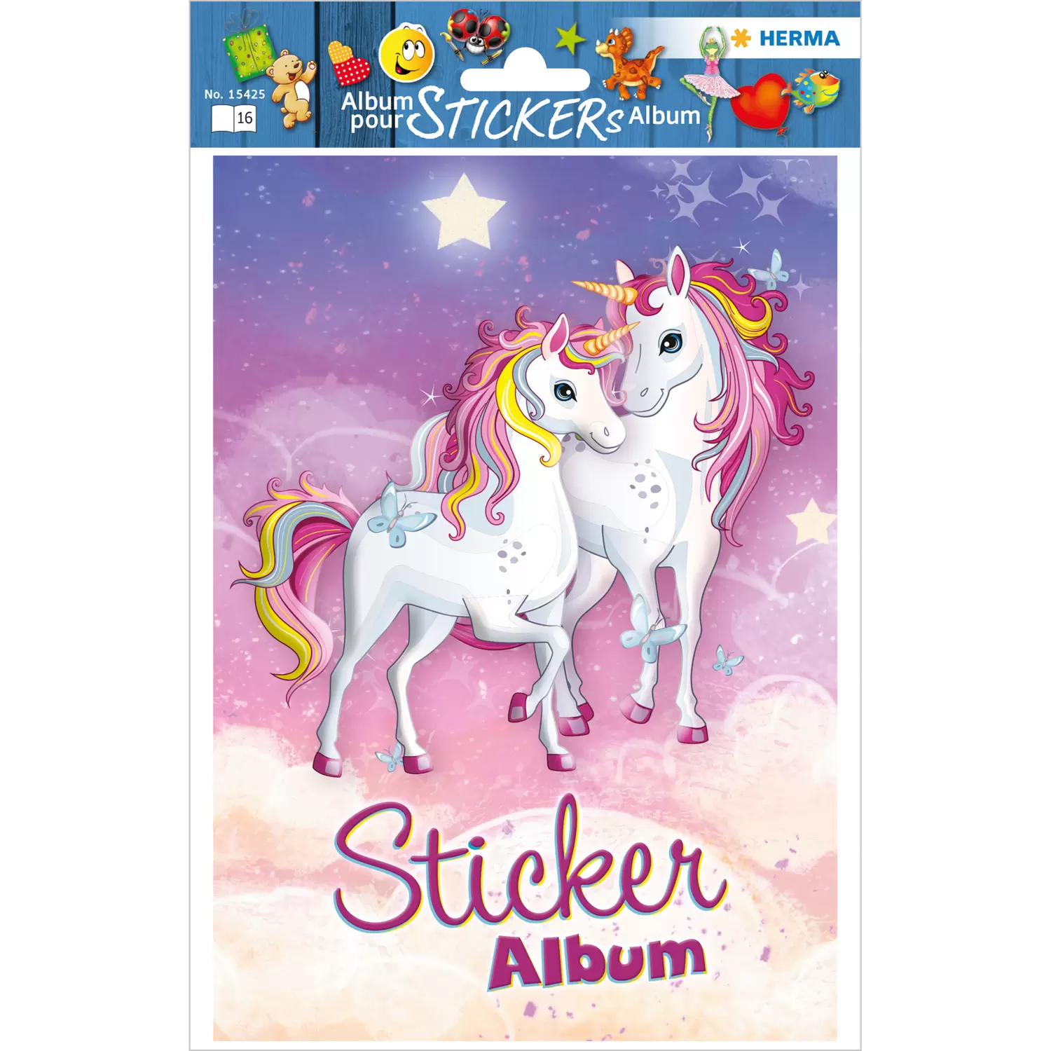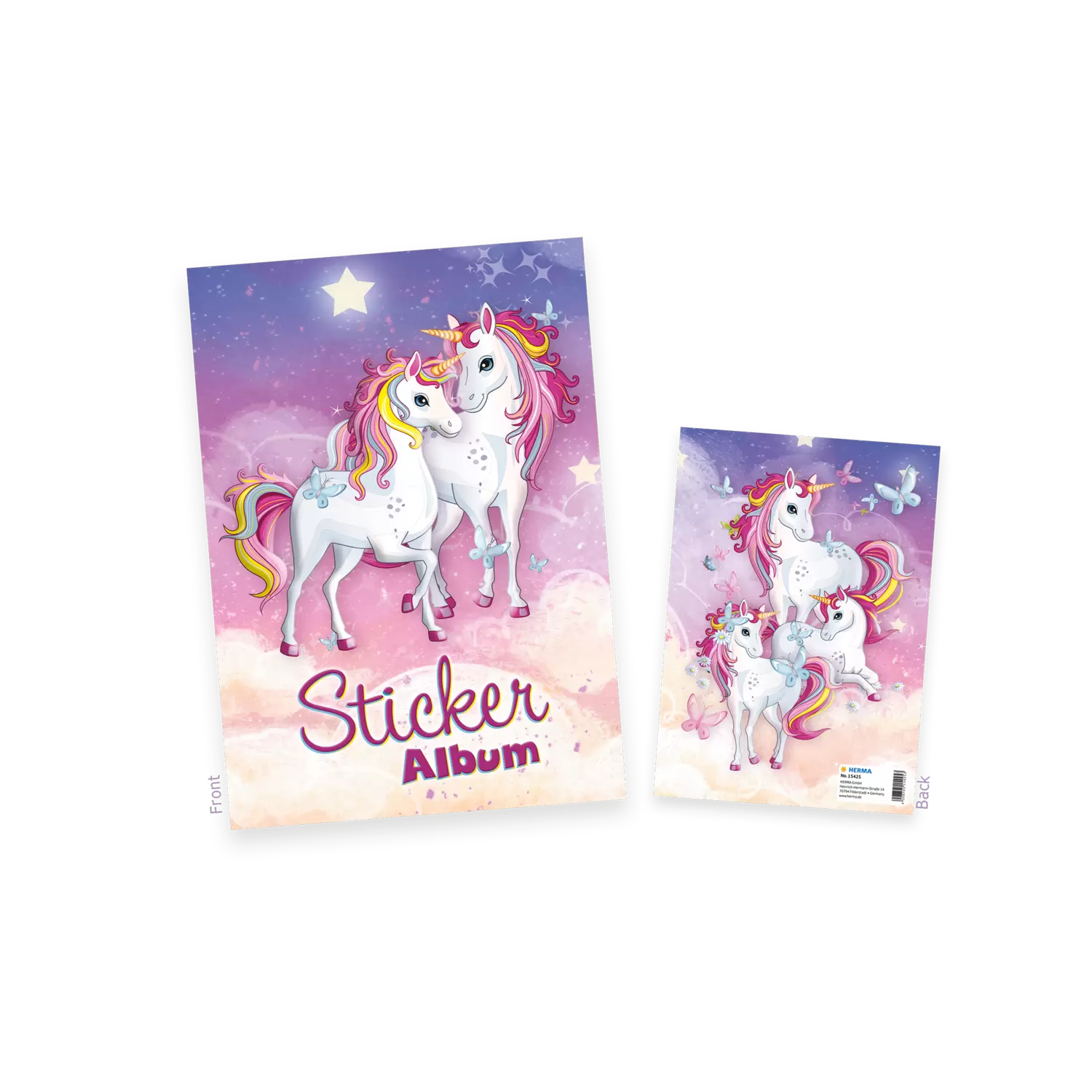 De verzamelkoorts slaat toe! Het begint al op de kleuterschool: de kleintjes krijgen hun eerste stickers en plakplaatjes cadeau. Later op de basisschool is de speelplaats de centrale plek waar druk verzameld en geruild wordt! Om de vele kleurrijke, glitterende en glinsterende stickers veilig op te bergen, hebben de kleine en grote stickerfans een mooi stickeralbum nodig, waarin de stickers stevig blijven zitten en er ook gemakkelijk weer uitgehaald kunnen worden. Het formaat is handzaam en ideaal voor kleine kinderhandjes, met een fraai vormgegeven, vrolijke omslag. Het HERMA stickeralbum telt 16 bladzijden, de binnenpagina's zijn blanco, dus leeg en onbedrukt. Het album biedt veel plaats aan fantasierijke sticker-werelden. Het aantal populaire kindermotieven van de HERMA stickeralbumwereld is uitgebreid: helemaal nieuw in het assortiment is het eenhoorn-motief. Vriendelijk en lief kijken de eenhoorns elkaar aan, te midden van een bevallige fantasiewereld in fraaie rosétinten. Een prachtig motief voor liefhebbers en kleine stickerfans.