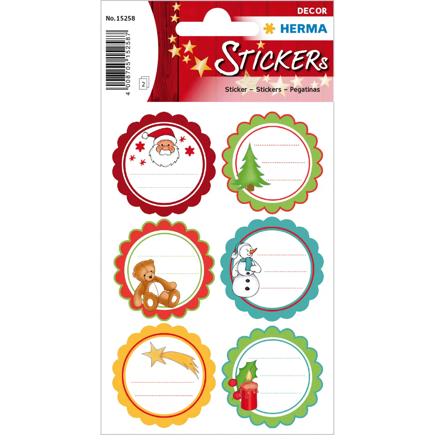 Zelfklevende decoratieve etiketten, bont bedrukt met Kerstmotieven. Voor het decoreren van geschenken, kaarten en brieven.
