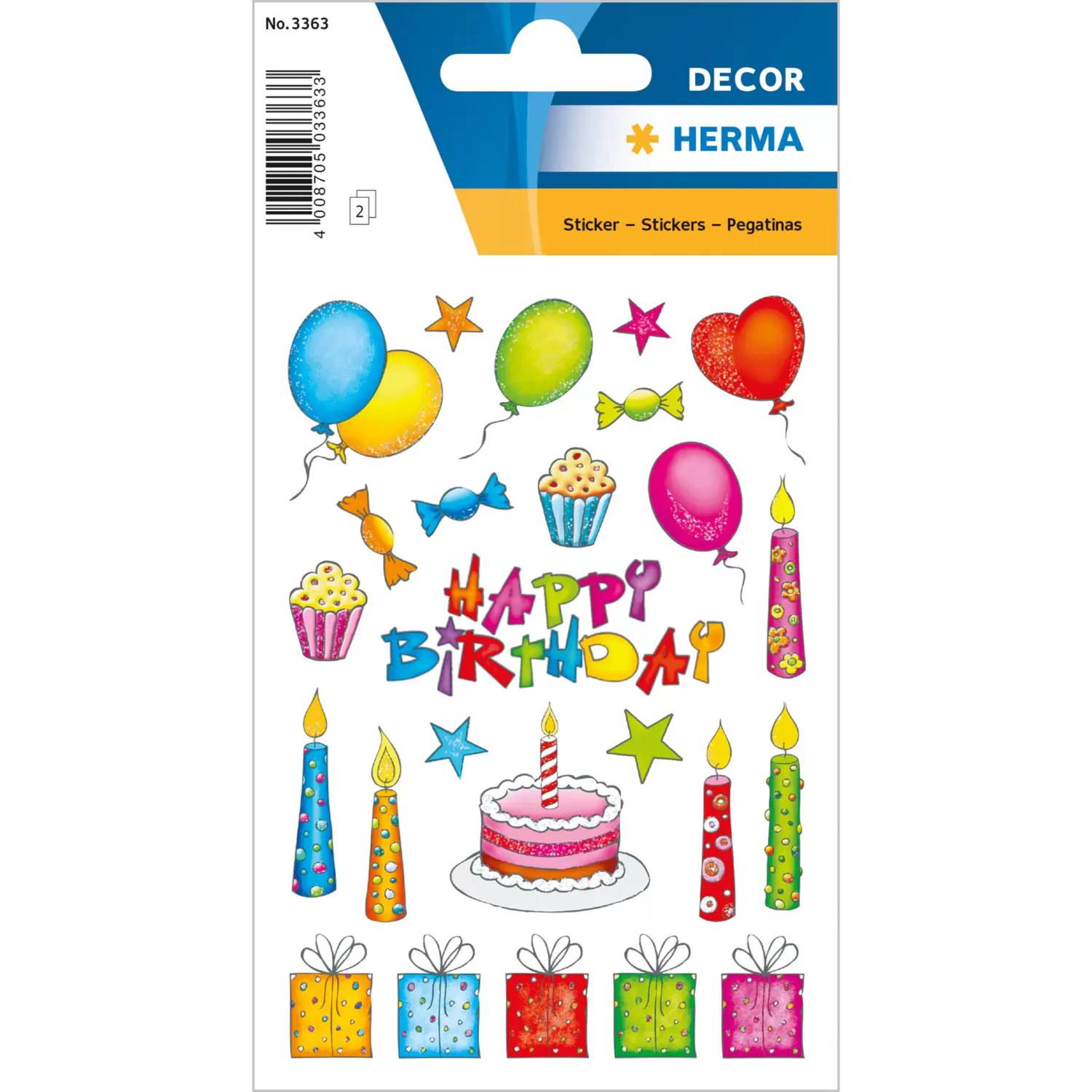 Liefdevol vormgegeven verjaardagsstickers met fijn glittereffect