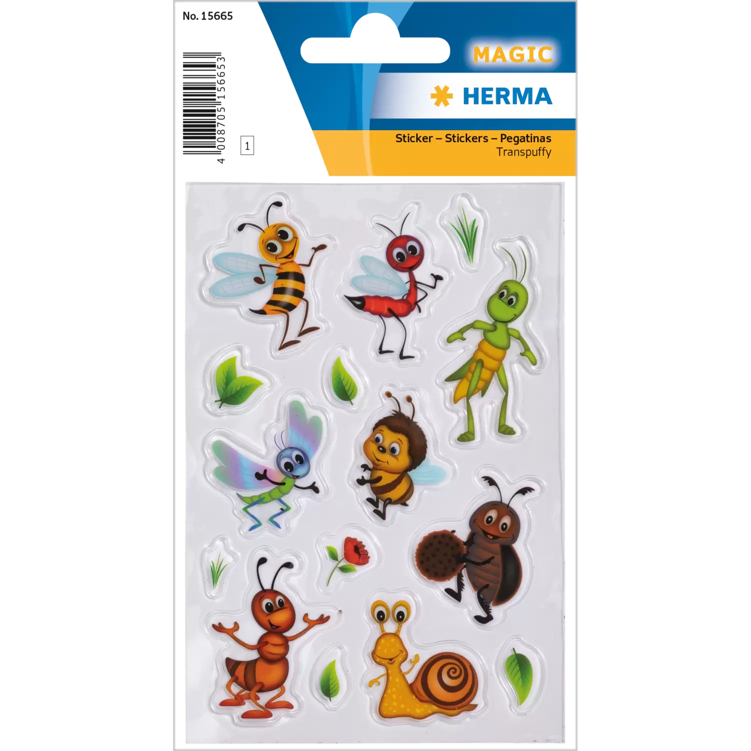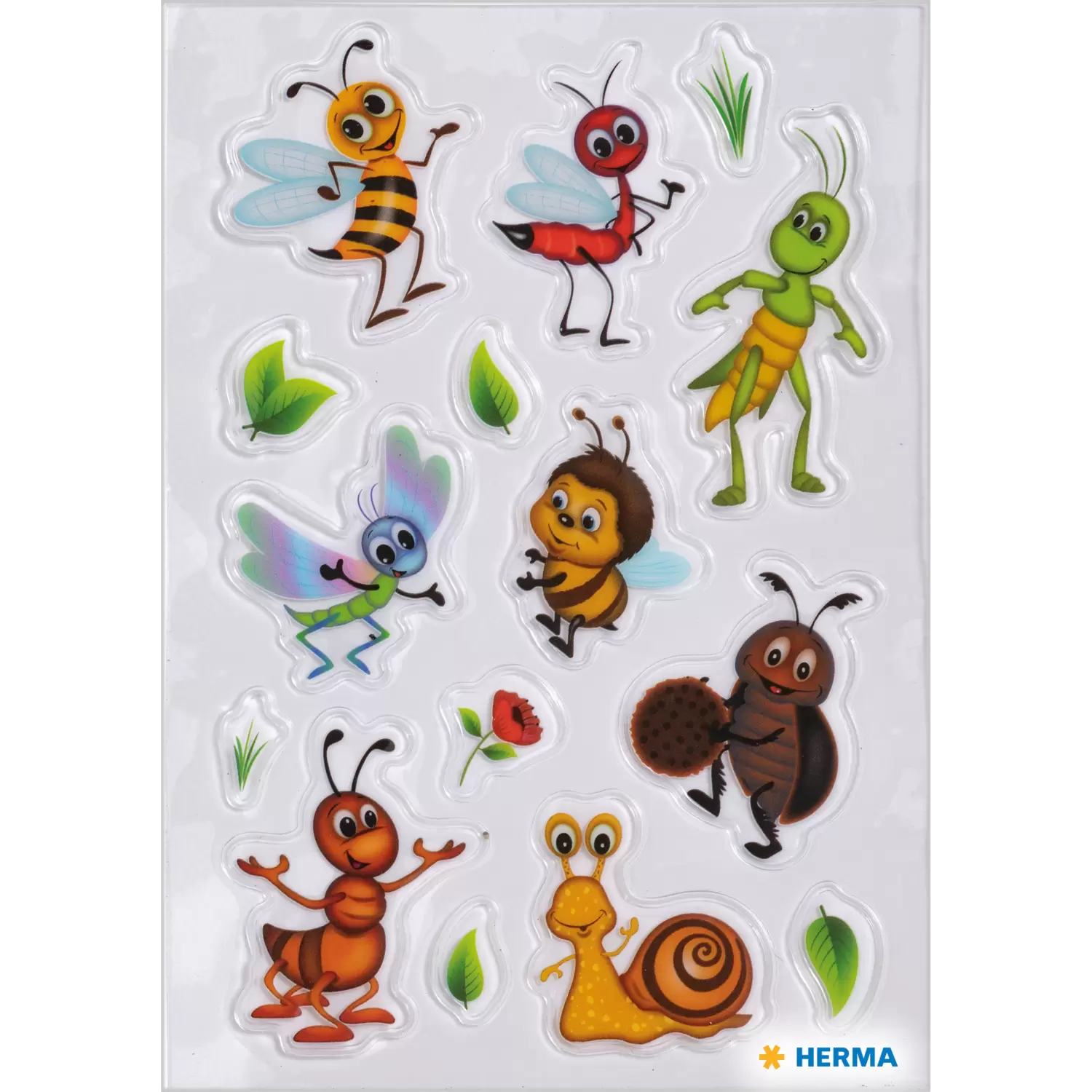 Wat kruipt en vliegt daar in de tuin? Allemaal schattige beestjes! Van de partij zijn de bij en de hommel, de kever, de mier, de slak en al hun vriendjes. De betoverende kleine kruipertjes hebben een kindvriendelijke uitstraling en zijn ideaal voor kleine insectenfans. Bijzonder eraan is de robuuste transpuffy-folie. Deze is transparant en zelfklevend en hecht op bijna alle oppervlakken. Ideaal als versiering voor op schriften, ordners en mappen. Elke verpakking bevat 1 stickervel met telkens 15 stickers.
