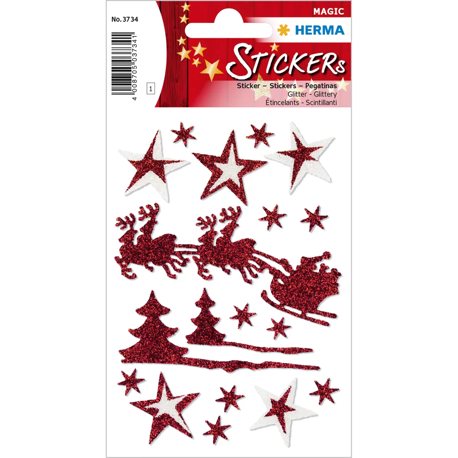 Zelfklevende decoratieve etiketten van speciale materialen, bont bedrukt met Kerstmotieven. Voor het decoreren van geschenken, kaarten en brieven.