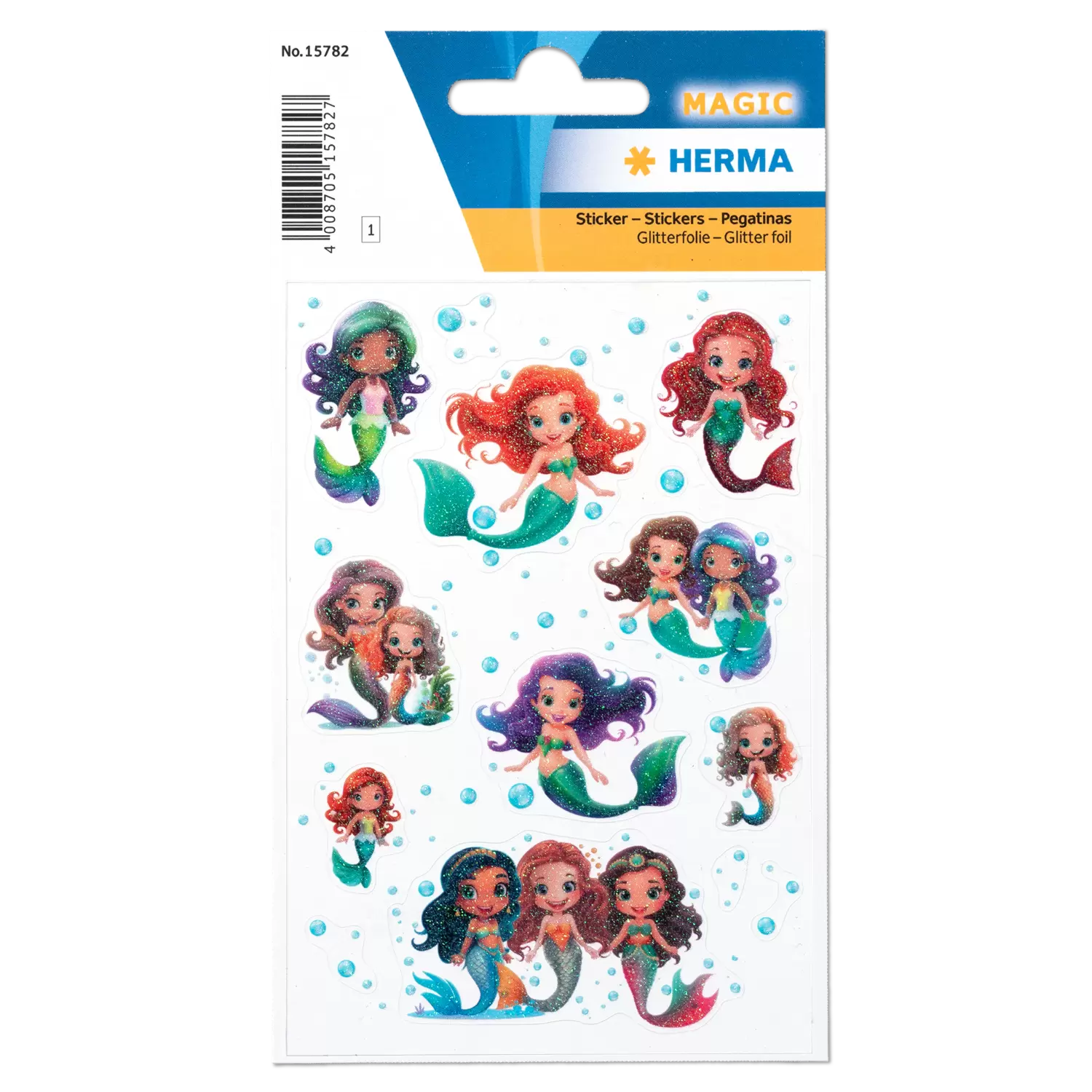 Deze prachtige glitterfolie-stickers met de betoverende zeemeerminnen zijn een highlight voor alle sticker-fans. De kleurrijke getekende zeemeerminnen slepen je mee in een magische onderwaterwereld en zorgen voor glans en glitter in elke kinderkamer. De schitterende stickers zijn niet alleen een echte blikvanger, maar ook perfect geschikt om de fantasie te prikkelen en creatief te worden. Bij het knutselen, het vormgeven van vriendschapsboekjes of gewoon voor het versieren van schriften en mappen – de mogelijkheden zijn grenzeloos. Met deze unieke plakkers wordt stickeren een spannend onderwateravontuur. De combinatie van glitterend materiaal en liefdevol design zorgt ervoor dat elk kind zijn eigen kleine wereld vol zeemeerminnen kan creëren. Deze glitterfolie-stickers zijn ideaal om te gebruiken tijdens onvergetelijke knutseluurtjes en laten de ogen stralen van grote en kleine zeemeerminnen-fans.