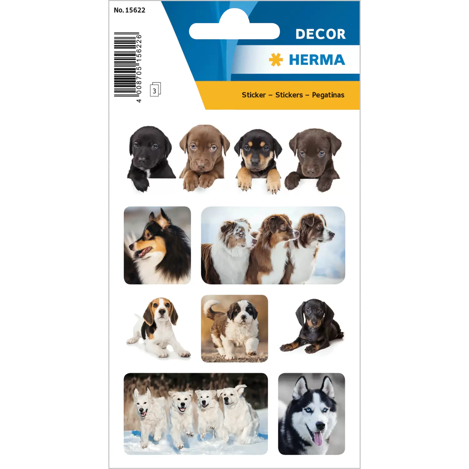 Wie zou deze schattige honden-stickers ooit kunnen weerstaan? Van de indrukwekkende australian shepherd via een schattig teckel-jong tot en met een lieftallige bruine Labrador-pup. Deze HERMA hondenstickers laten harten – niet alleen van hondenliefhebbers – sneller kloppen. Ze betoveren vanaf het eerste moment en vragen erom direct opgeplakt te worden. Daarvoor hoeven ze alleen maar heel gemakkelijk van het stickervel te worden getrokken en vervolgens kunnen ze overal worden aangebracht. Het gebruik kent daarbij geen grenzen – als lievelingsdier in het vriendschapsboekje, voor het personaliseren van de lunchbox of heel onconventioneel als leuke blikvanger op de voerbak van de hond. Op de stickers met verschillende honden staan uiteenlopende rassen, zowel volwassen dieren als schattige kleine pups. Ook als kleine attentie voor uw hondenvriend of voor uw kind dat het allermeest van honden houdt, zijn de schattige sieretiketten geschikt. Acht verschillende stickers zitten 3x in een verpakking, zodat 24x echt sticker-plezier gegarandeerd is!