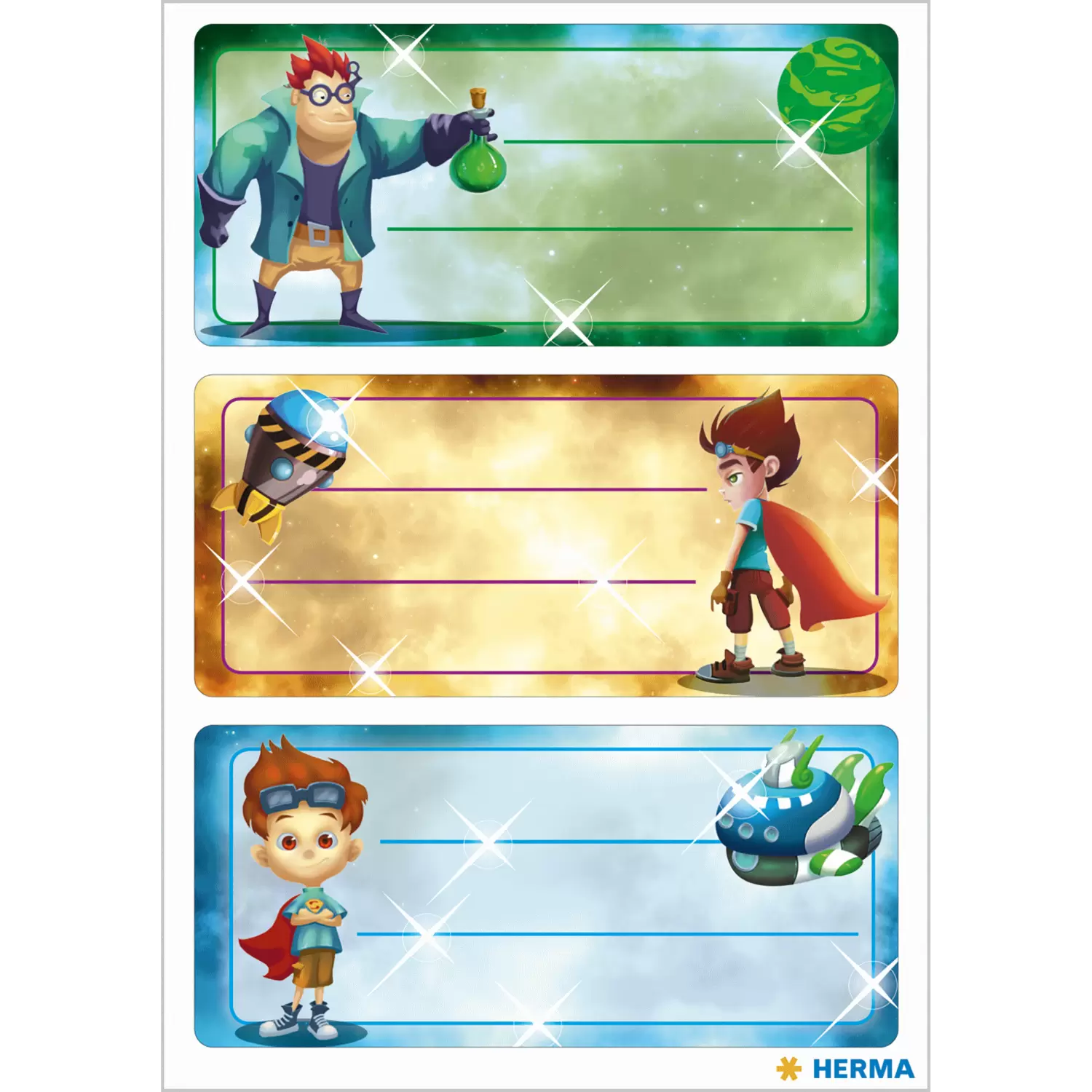 Met deze slimme en kleurrijke schooletiketten van beschrijfbaar papier van merkfabrikant HERMA is het markeren en labelen van boeken en notitieboekjes echt leuk. Met de naamstickers kan het kind duidelijk worden geïdentificeerd, ondanks het feit dat de meeste boekjes of boekomslagen binnen een klas identiek zijn. De vele verschillende motieven en ontwerpen komen overeen met de voorkeuren of hobby's van de leerlingen. De naamlabels zijn met name geschikt voor HERMA boekomslagen van kunststof of papier.