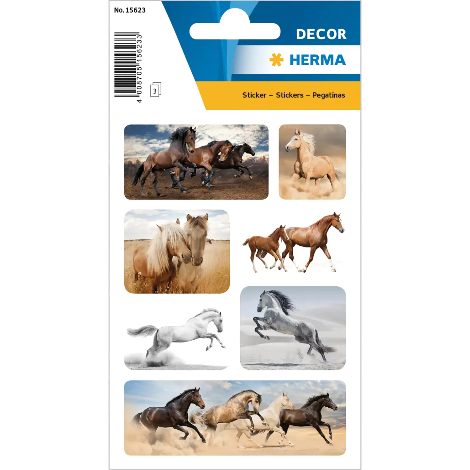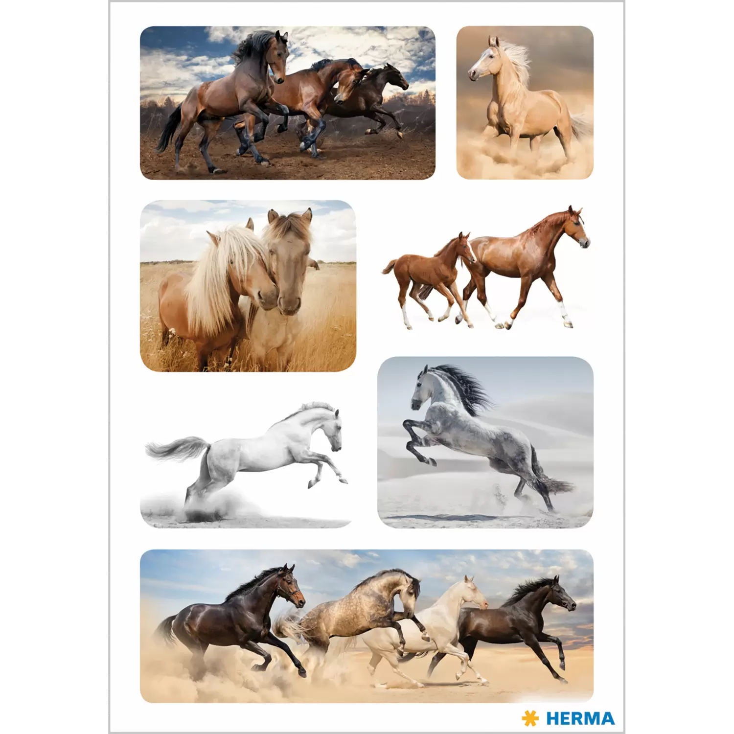 Het toppunt van vrijheid: deze imposante paarden-stickers van HERMA maken meteen indruk en zijn helemaal het juiste motief voor echte paarden-fans. De krachtige wilde paarden zijn afgebeeld in verschillende poses, zoals ze galopperen, steigeren of ontspannen in het gras staan. De stickers met indrukwekkende paardenmotieven kunnen ideaal als attentie naar de paarden-themaparty worden meegenomen of als klein cadeautje voor de verjaardag alle ruiters en paardenvrienden een groot plezier doen. Bovendien hechten de dieren-stickers op diverse gladde oppervlakken, zodat ze naar believen kunnen worden gebruikt. Bijvoorbeeld op de poetsbox, de eigen paardenpoetsspullen of op andere voorwerpen komen de sieretiketten bijzonder goed tot hun recht. Het voordeel van deze personalisering is dat je de voorwerpen altijd snel weer herkent en meteen weet dat ze van jou zijn. Maar ook in vriendschapsboekjes, stickeralbums en op schoolspullen, zoals boeken en schriften, doen de prachtige paarden-stickers het goed en trekken de aandacht van vrienden en medescholieren. In een verpakking zitten 21 s tickers met 7 verschillende motieven op 3 stickervellen, zodat de creativiteit geen grenzen kent.