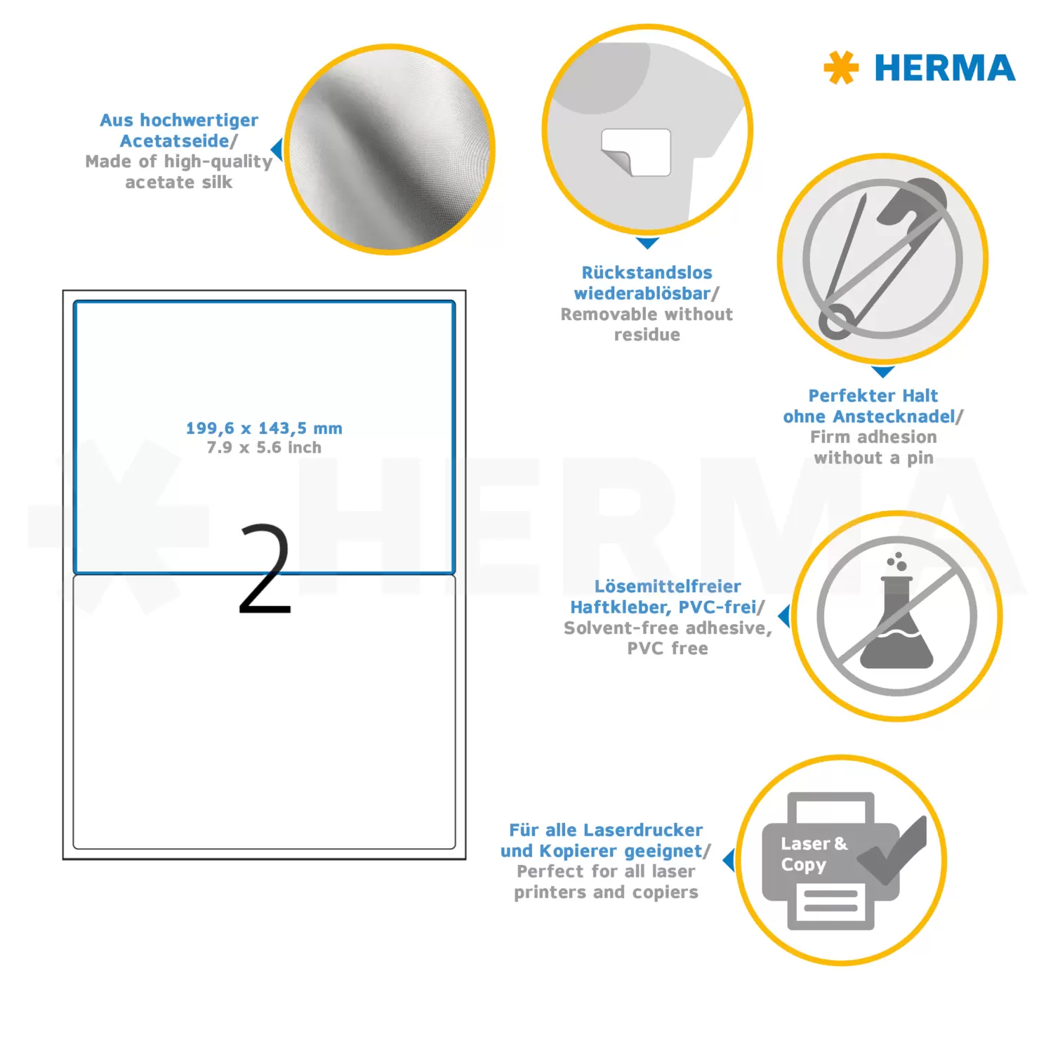 Naam/textieletiketten, verwijderbaar, A4, 199,6 x 143,5 mm, wit, van acetaatzijde, te bedrukken
