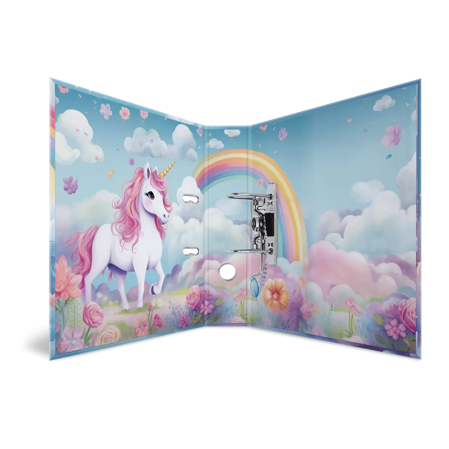• Prachtige thema-ordner met als motief "Happy Unicorns", van buiten en van binnen volledig bedrukt