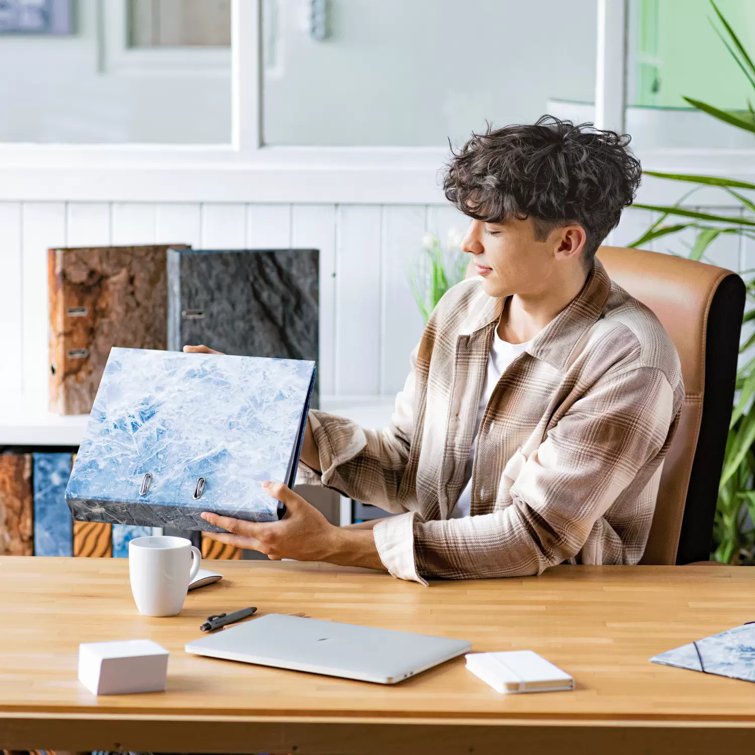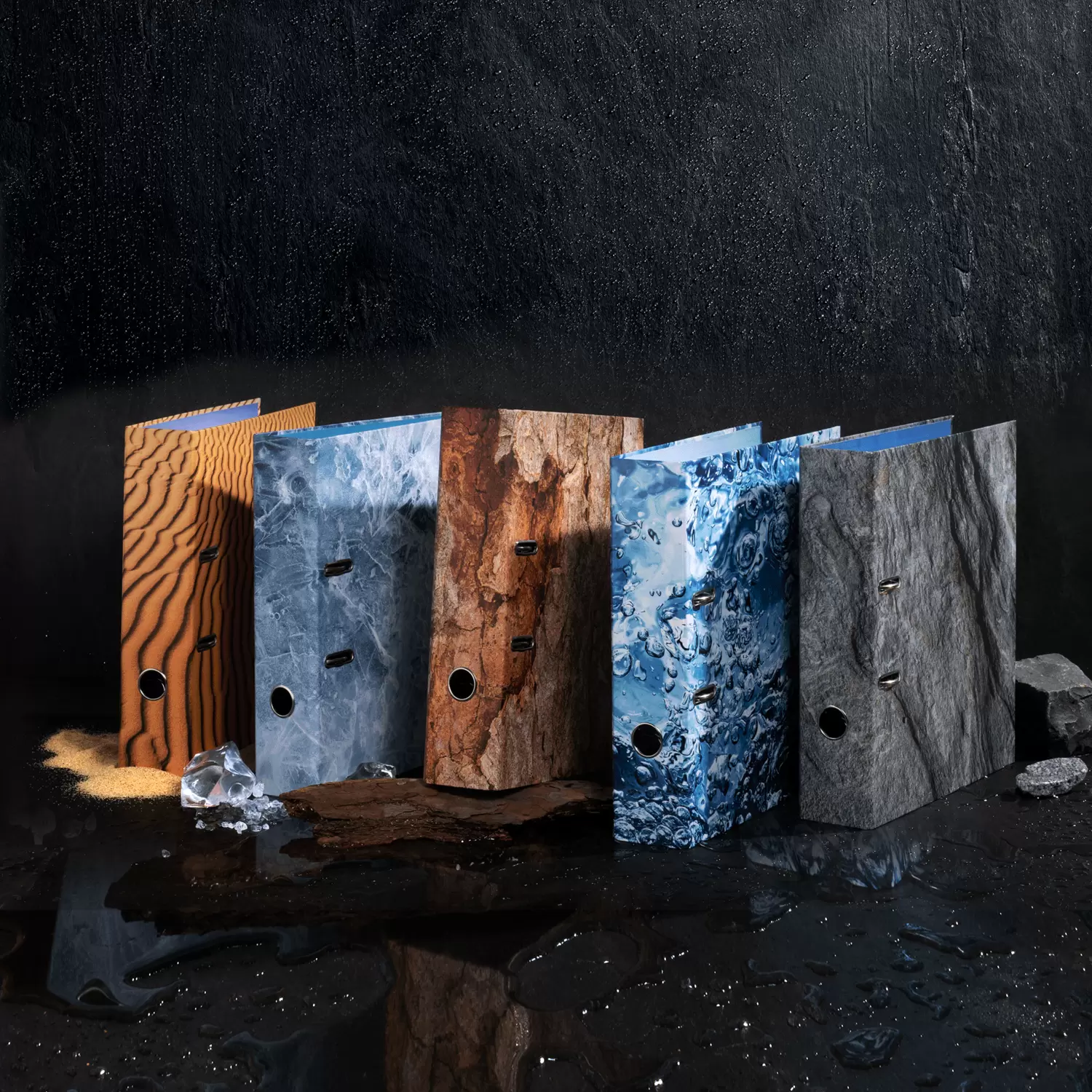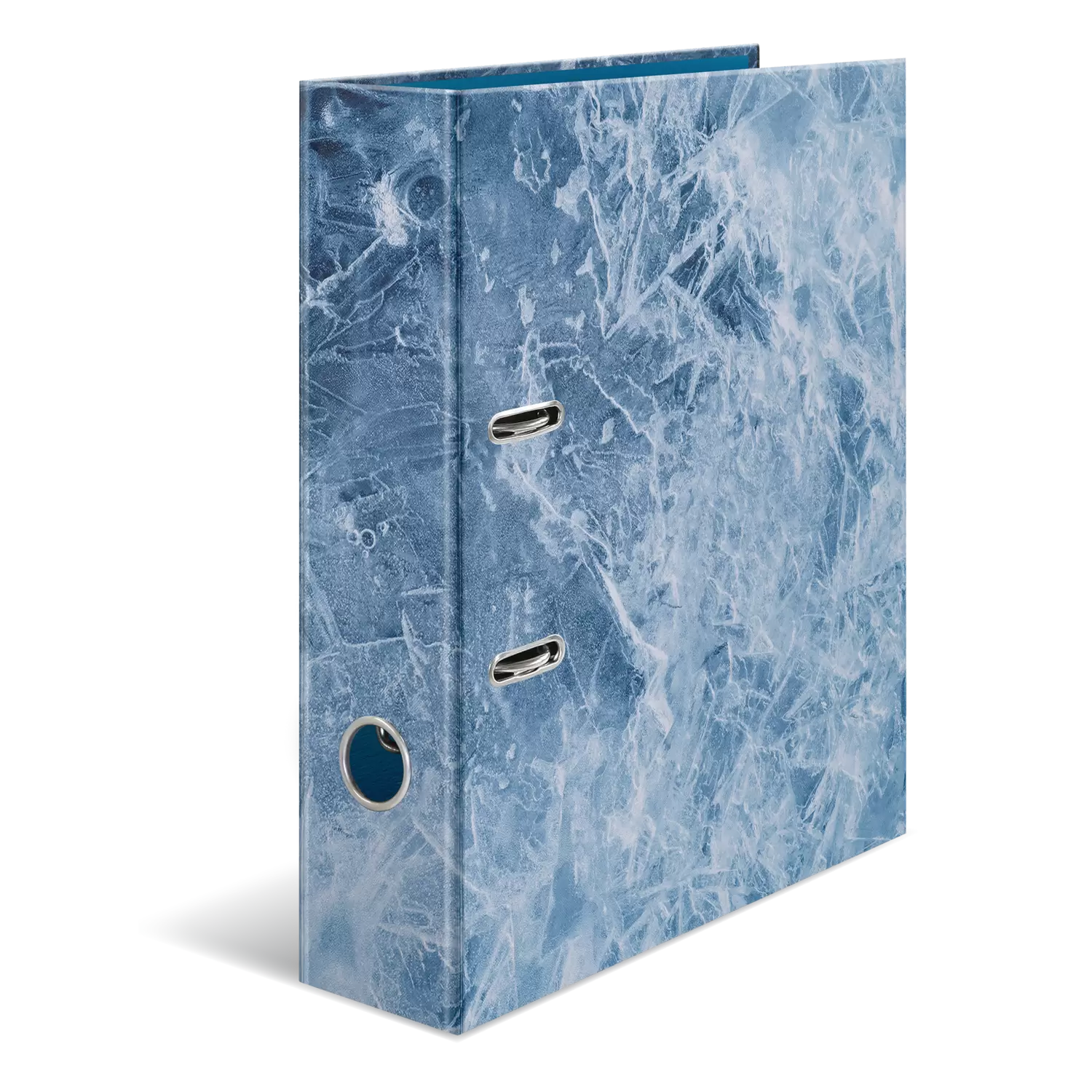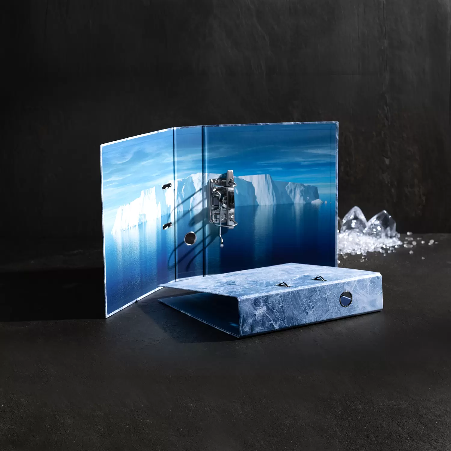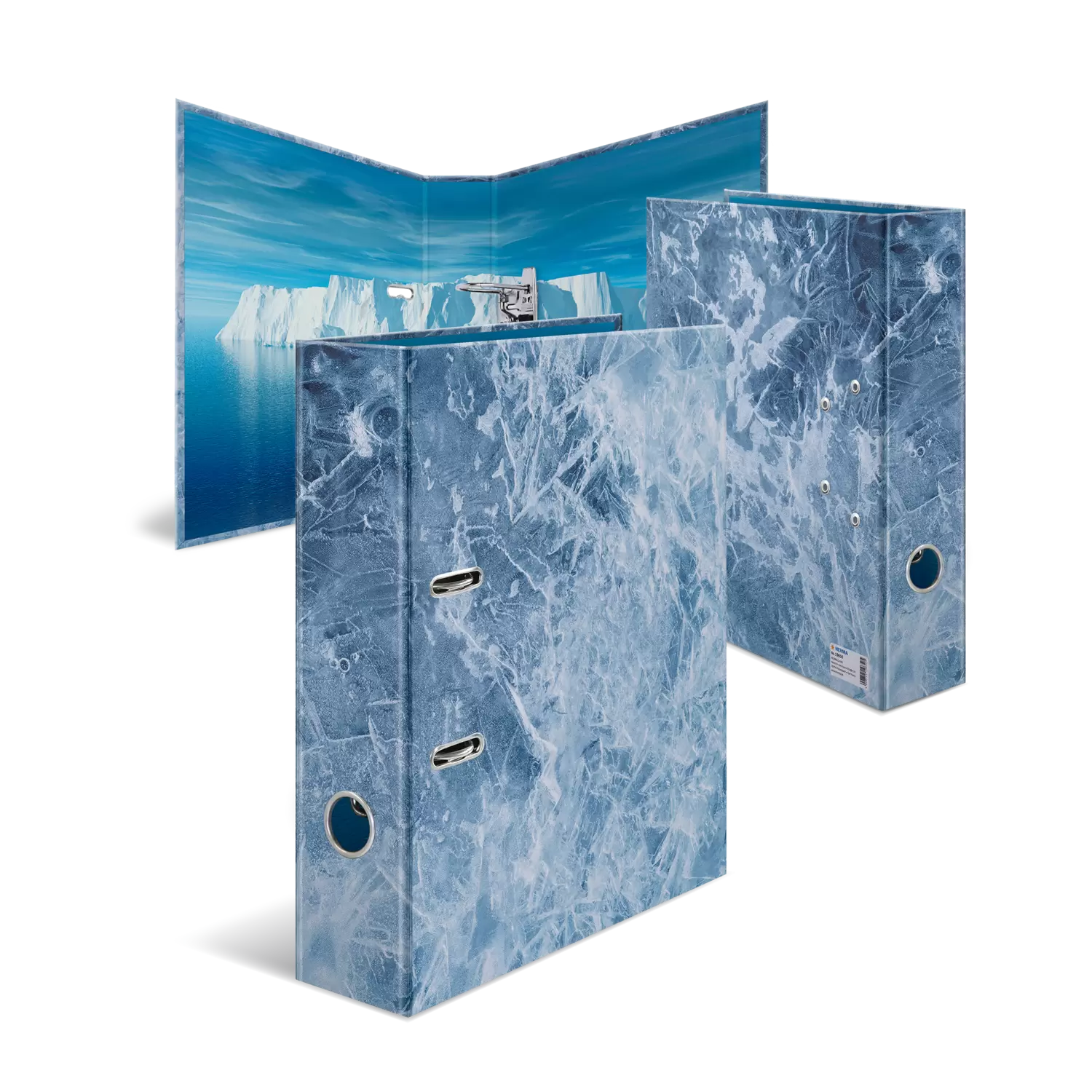 De natuur creëert unieke kunstwerken: gigantische kloven, kilometers hoge bergen, eindeloze zeeën, bomen die tot aan de hemel lijken te reiken – een overweldigend schouwspel van kracht en schoonheid. De HERMA deluxe thema-ordner "Nature" toont de rauwe en desondanks delicate kunst van de natuur: ruwe oeroude structuren, gegroeid en gevormd in eeuwen, ruig maar fragiel, wild en onberekenbaar, vol fijne vormen: een kunstwerk van de eeuwigheid, een vluchtig moment, een tijdvenster op het verleden van het eeuwige ijs. De ordner ‘Ice’ laat de bevroren oneindigheid van de gletsjers van de arctis zien. Kristallijne structuren in blauw en wit, oeroud, wild en wonderschoon. Een highlight voor de studeerkamer, voor op het bureau of in de kast. Het extra pluspunt: de stijlvolle afwerking, die van de ordner een absoluut high-end product maakt. Een eerbetoon aan de natuur –- de grootste kunstenares van allemaal.
