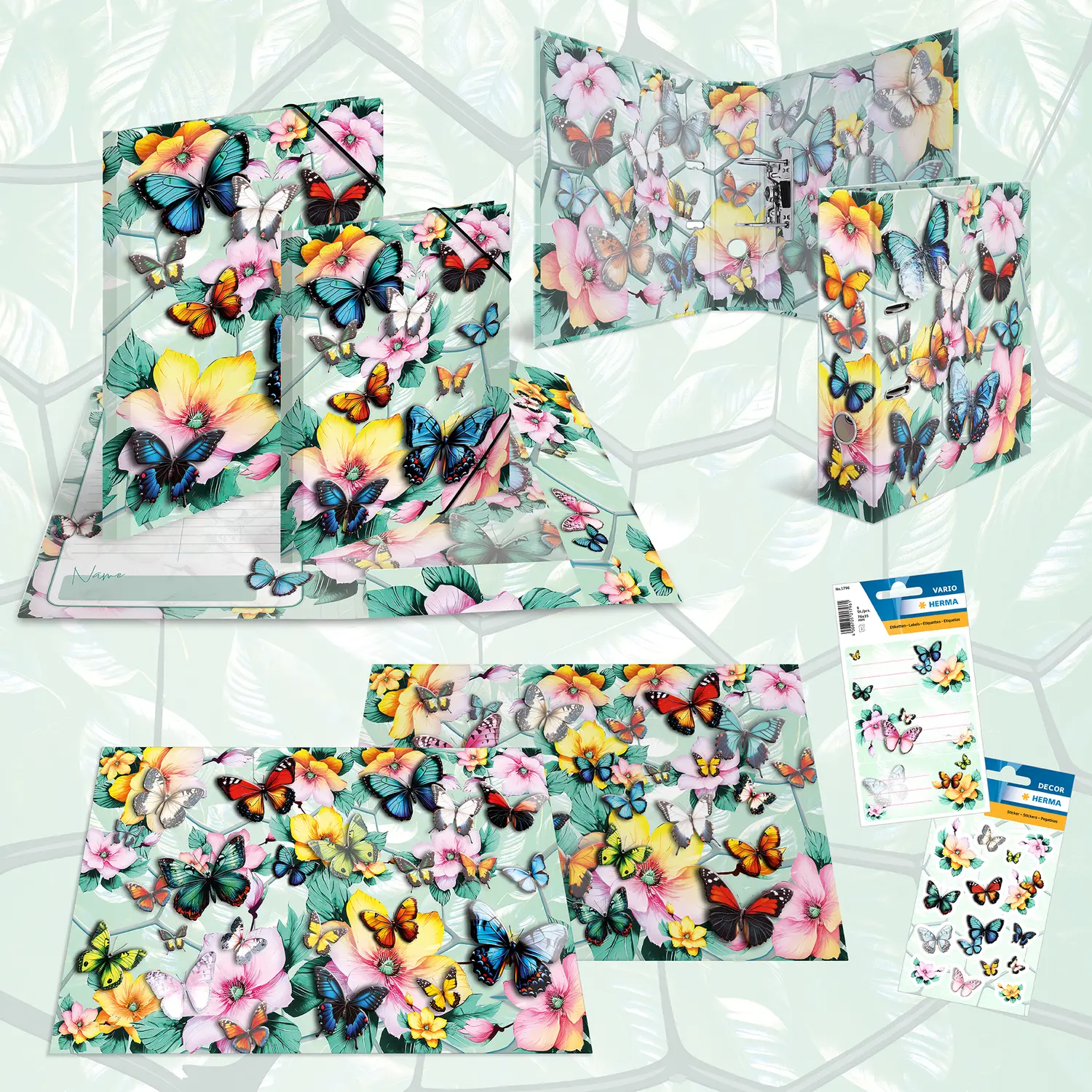 Welkom in de droomtuin: delicate bloemen gecombineerd met elegante vlinders in prachtige pastelkleuren. Deze Motiefordner is met veel liefde en oog voor detail een absolute blikvanger. De filigraan vlinders op de buitenkant van de map komen bijna tot leven dankzij de heldere kleuren en de glanzende folieafwerking. Van stralend blauw tot zonnig geel en zachtroze. hier gaat het hart van elke natuurliefhebber sneller kloppen. De map van stevig karton is met hoogwaardige afwerking uitgevoerd, met bedrukking aan de binnenkant en een stevig hefboommechaniek. Het garandeert een optimale opslag van documenten en transparante folies voor optimale orde thuis, op school, op de universiteit of op kantoor. Een echte blikvanger op de plank en op het bureau.