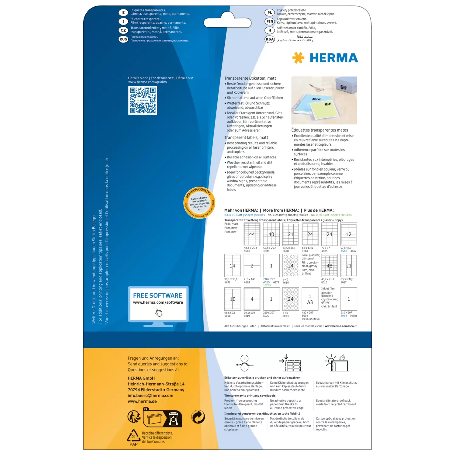 Transparante folie-etiketten mat, A4, 52,5 x 29,7 mm, weervast, permanent hechtend