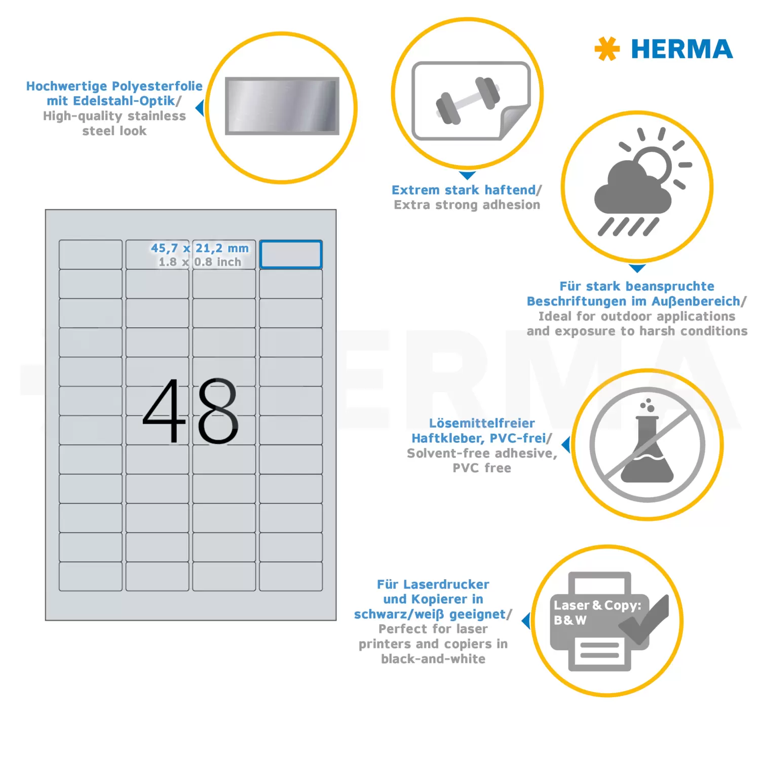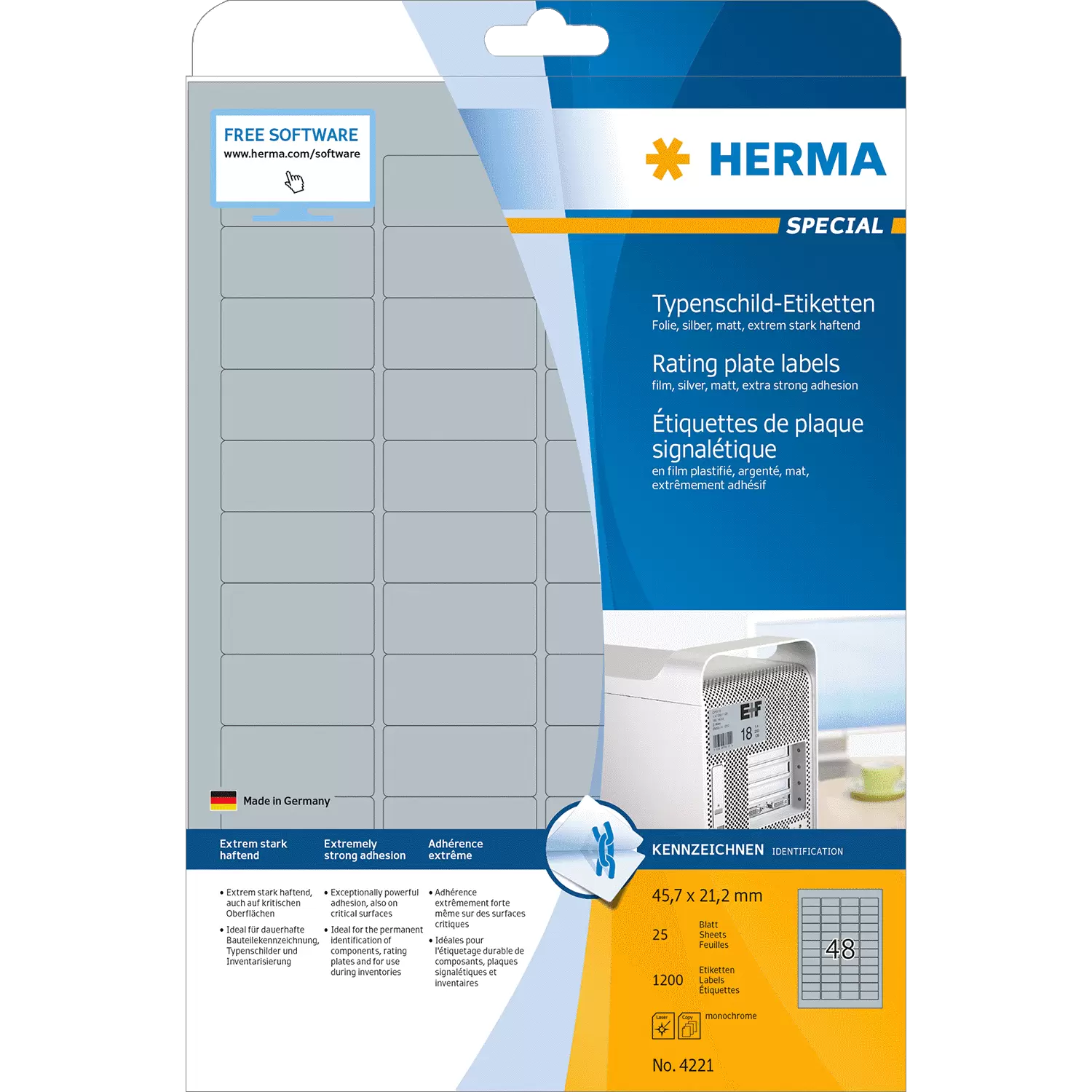 - Voor het duurzaam labelen van inventaris, eigendom en onderdelen, uiterst slijtvast, verouderings-/temperatuur-/UV-bestendig