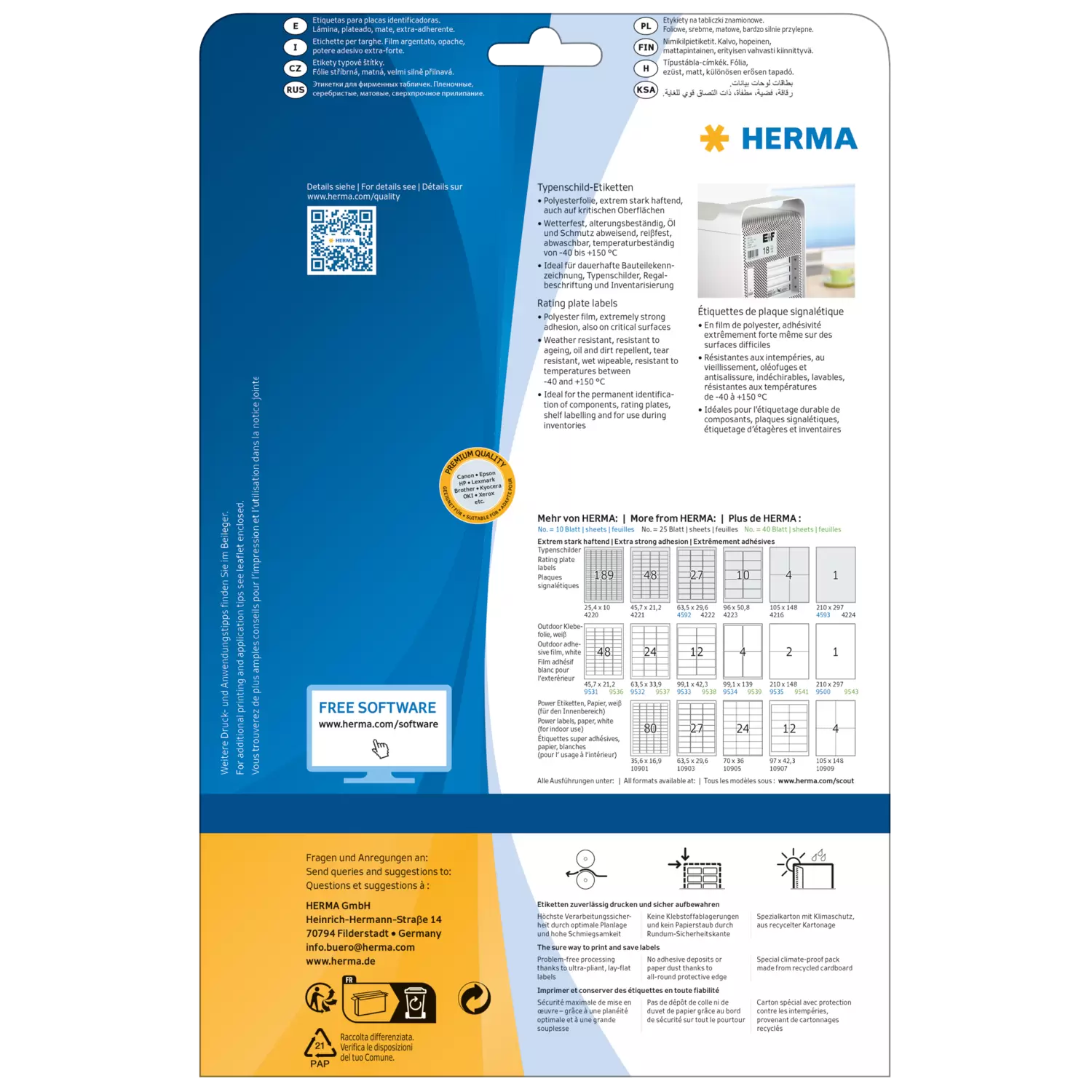 - Voor het duurzaam labelen van inventaris, eigendom en onderdelen, uiterst slijtvast, verouderings-/temperatuur-/UV-bestendig