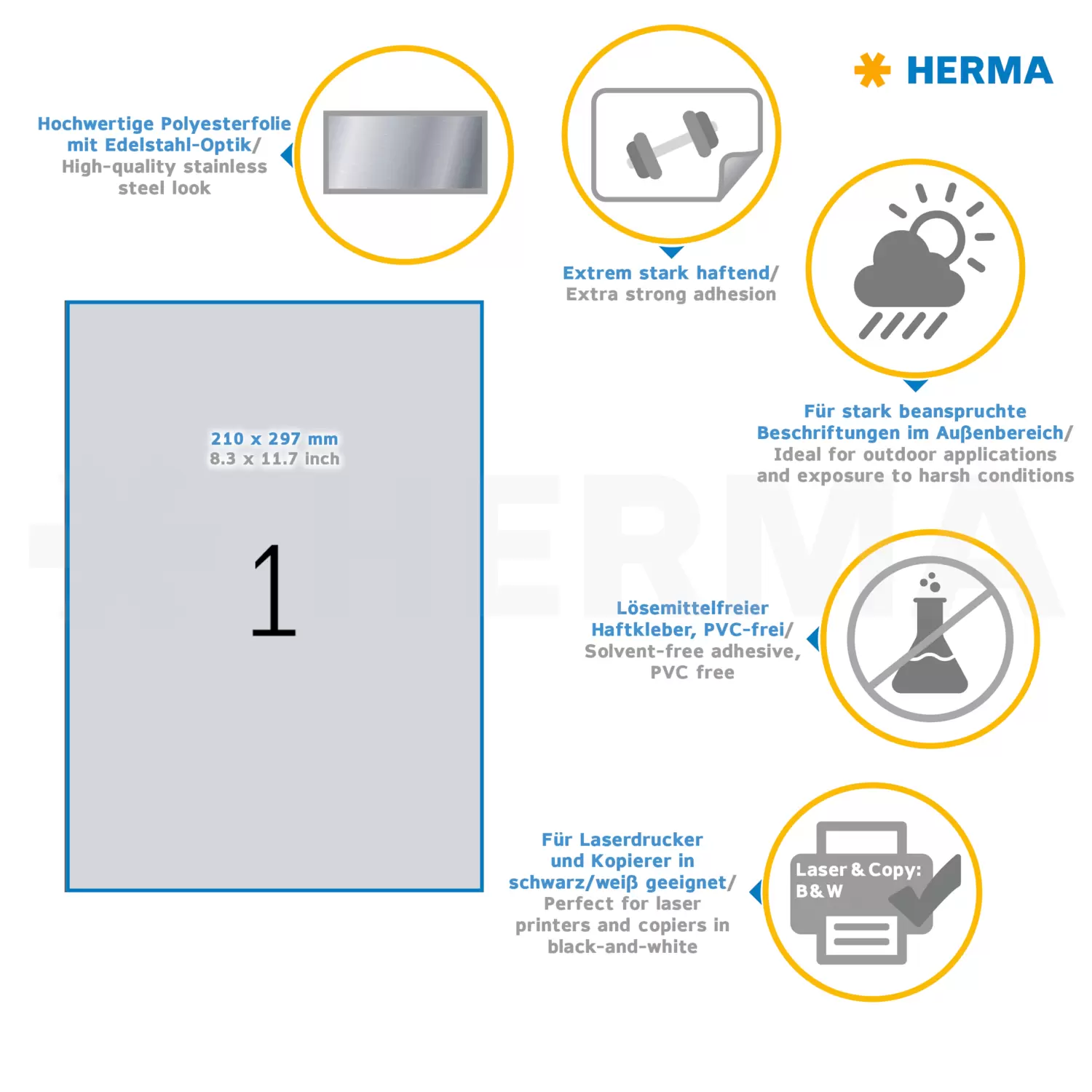 Typeplaatje-etiketten, zilver, A4, 210 x 297 mm, extreem sterk hechtend, weervast, scheurvast