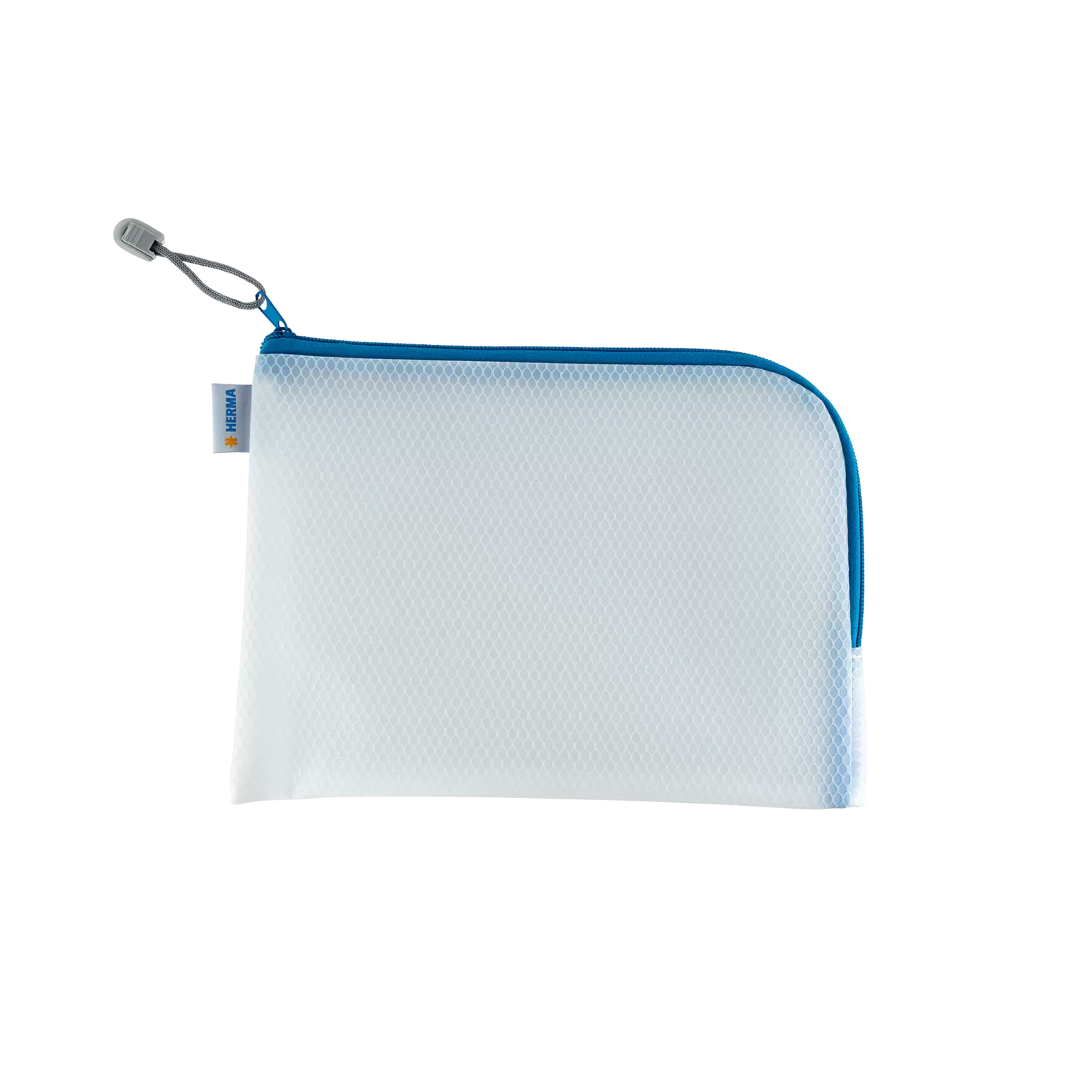 • HERMA universeel mesh-zakje A5, met praktische ritssluiting, naden met blauwe rand, 26 x 20 cm
