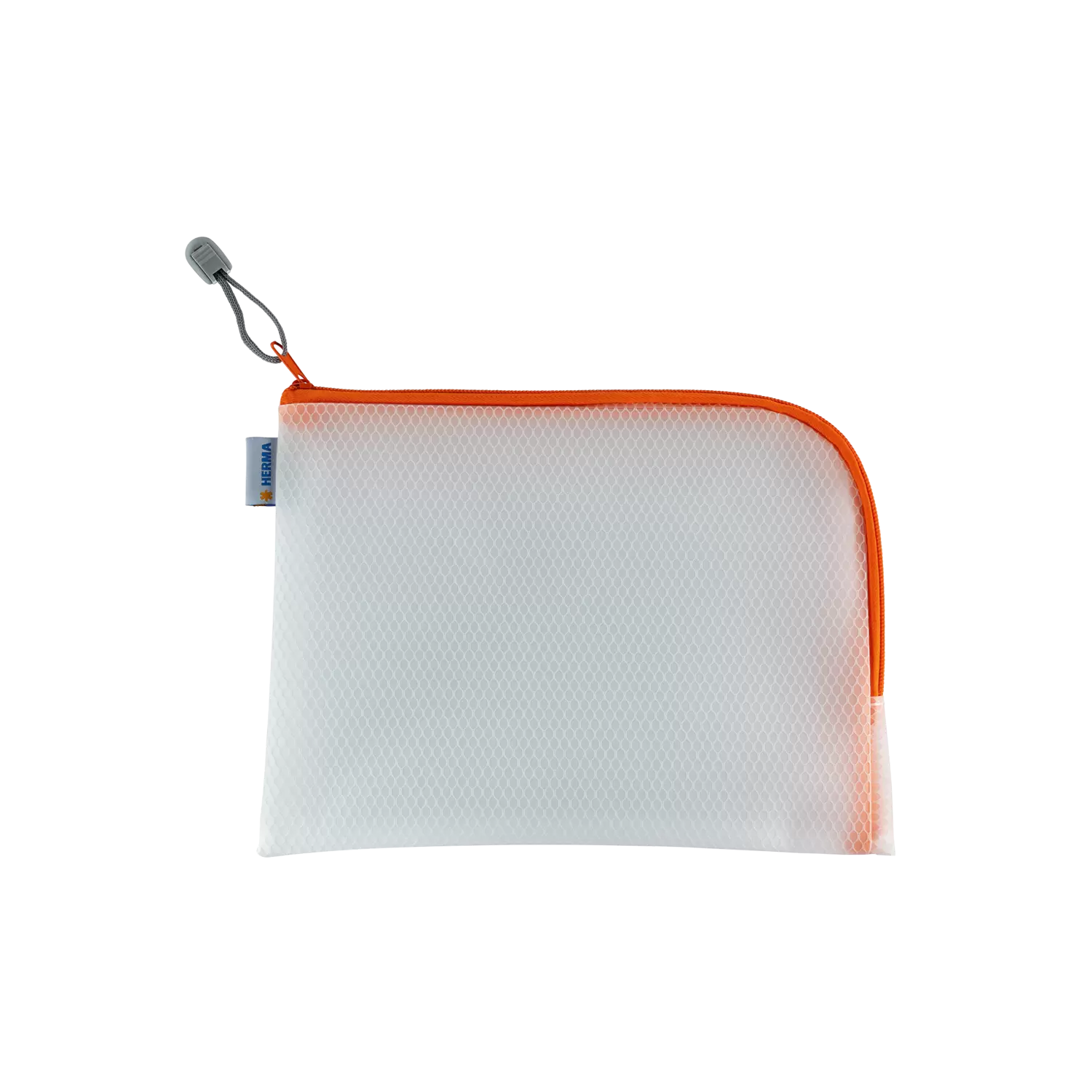 - HERMA universeel mesh-zakje A5, met praktische ritssluiting, naden met oranje rand, 26 x 20 cm