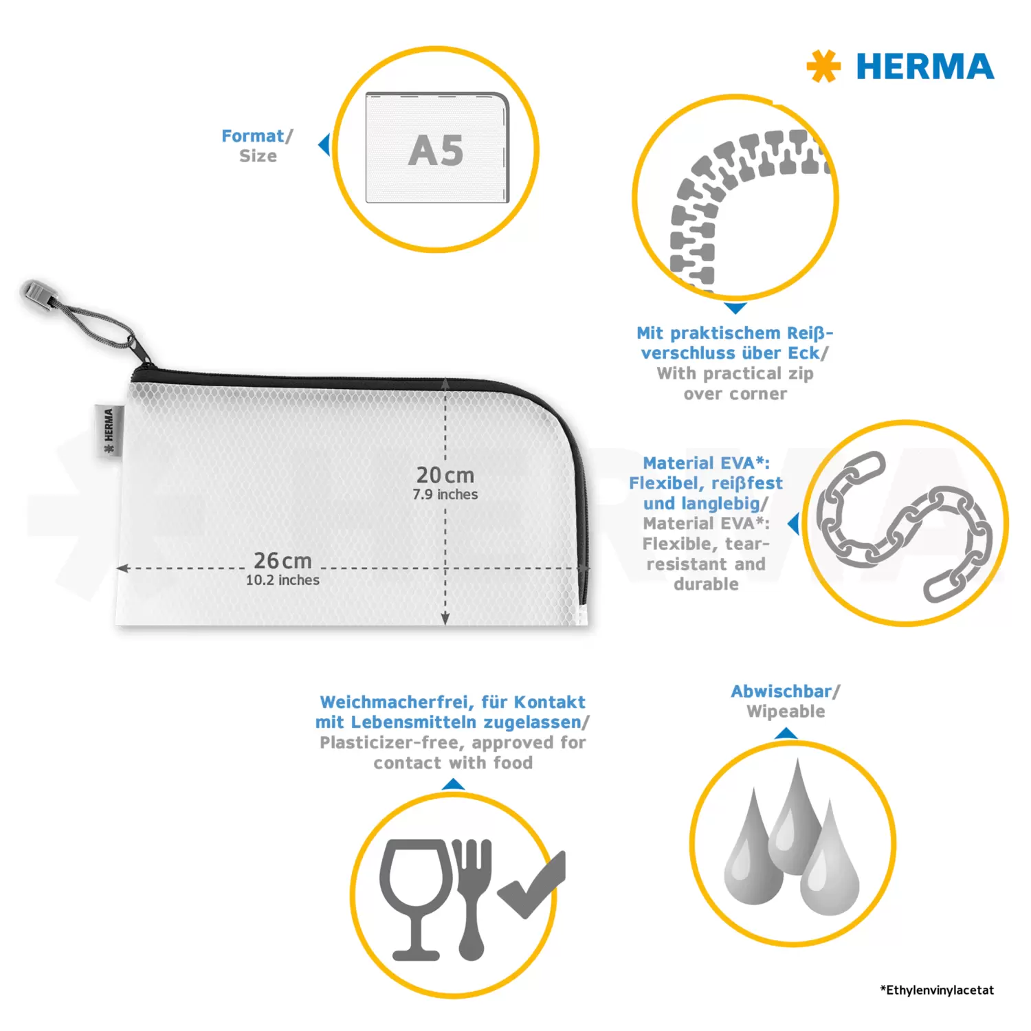 - HERMA universeel mesh-zakje A5, met praktische ritssluiting, naden met rode rand, 26 x 20 cm