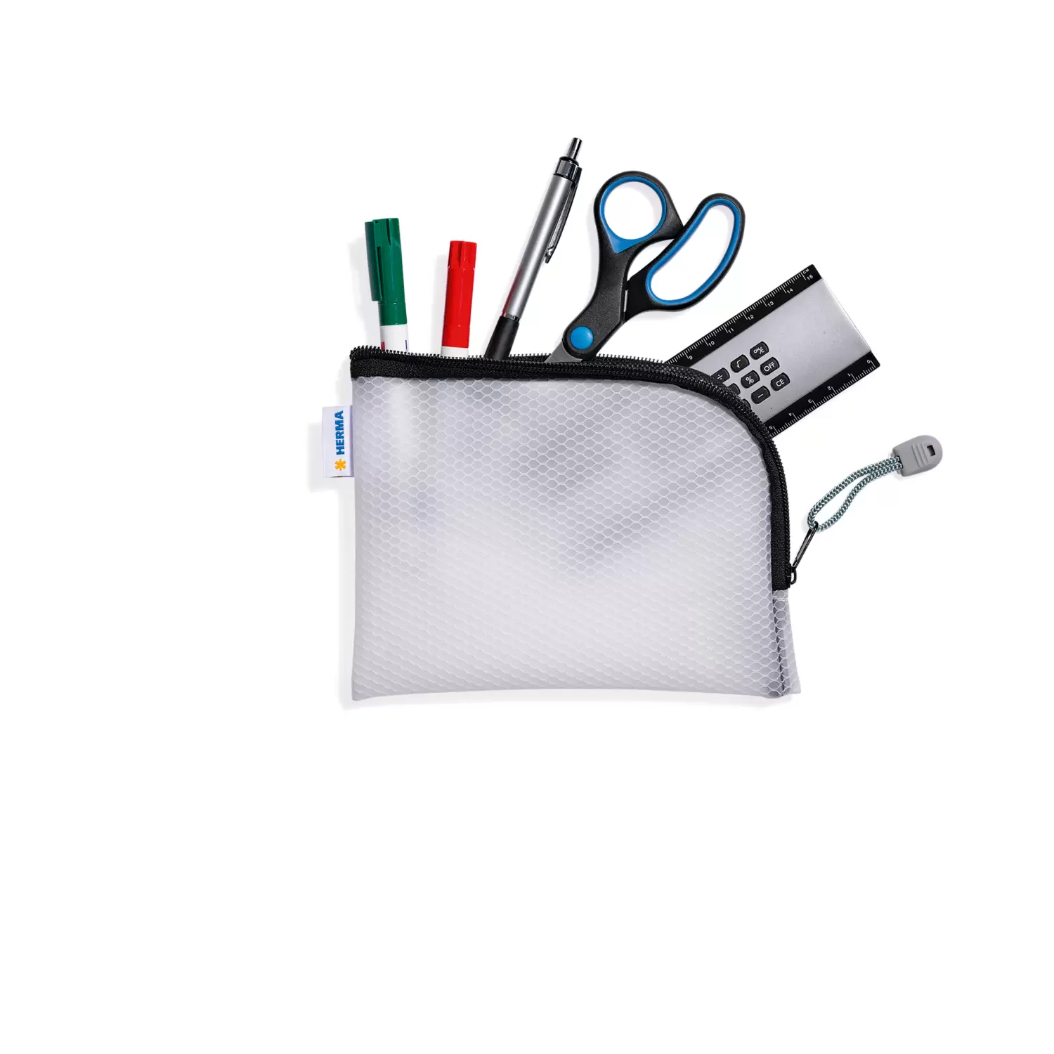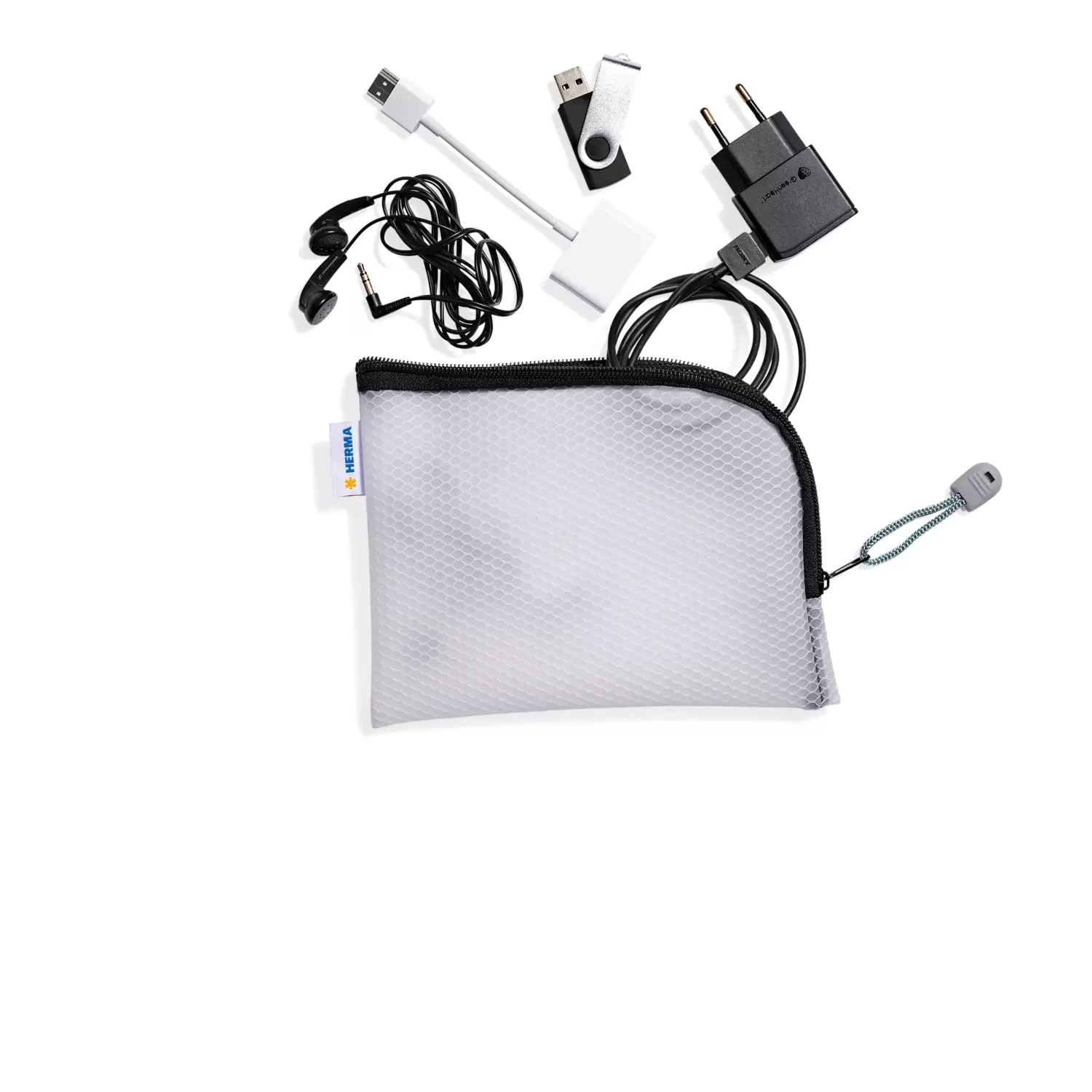 • HERMA universeel mesh-zakje, met praktische ritssluiting, in de maat 19 x 14 cm