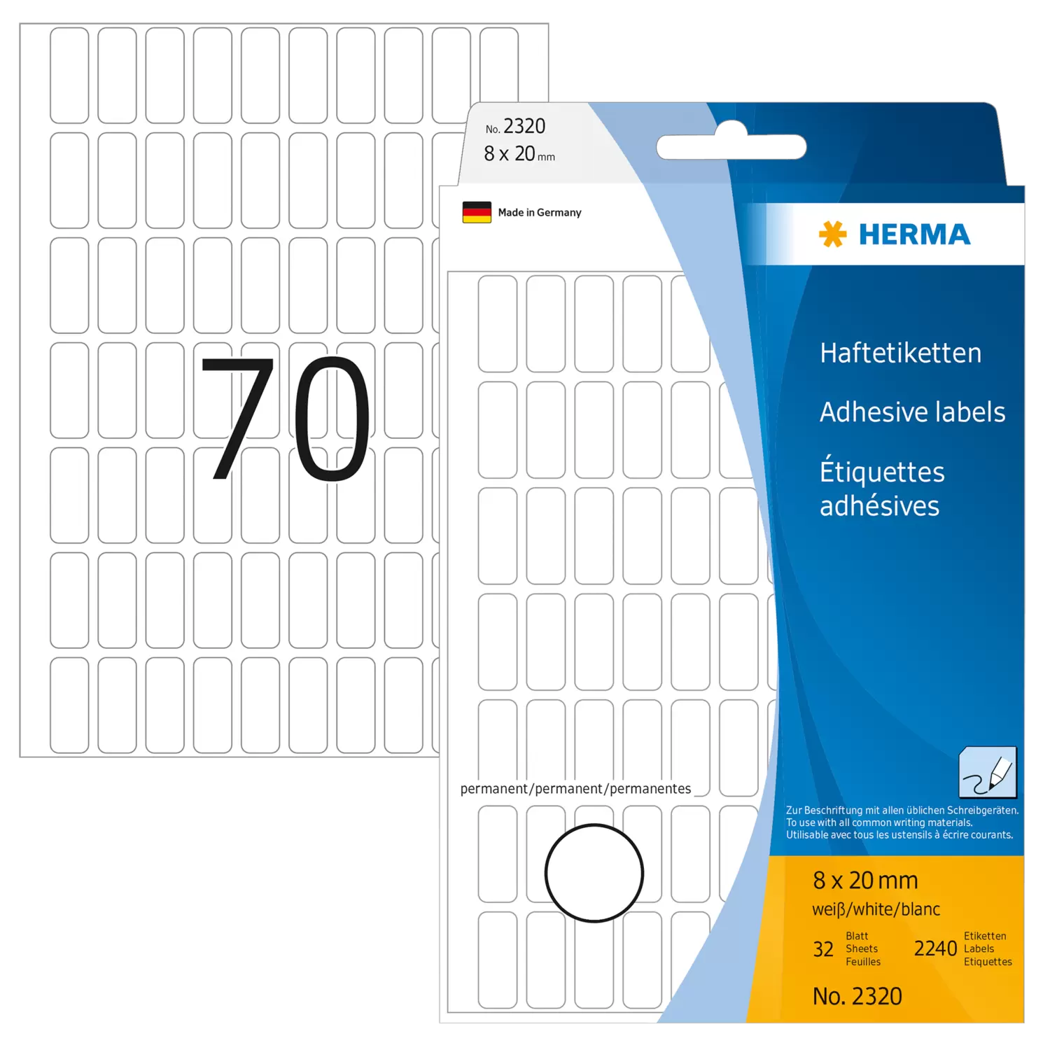 Multipurpose-etiketten, 8 x 20 mm, wit, permanent hechtend, om met de hand te beschrijven