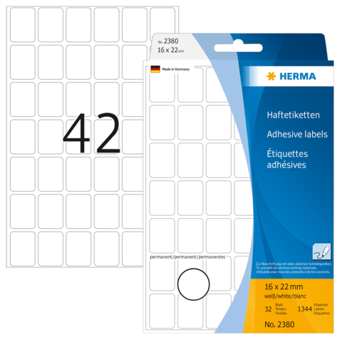 Multipurpose-etiketten, 16 x 22 mm, wit, permanent hechtend, om met de hand te beschrijven