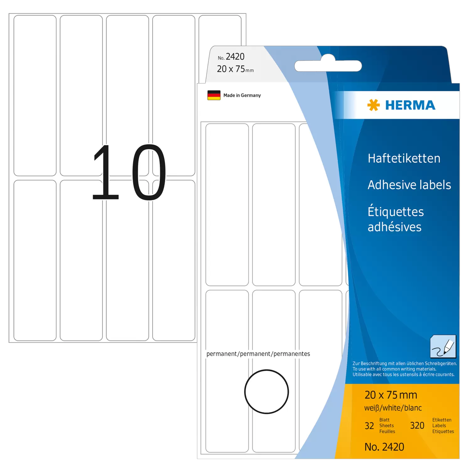Multipurpose-etiketten, 20 x 75 mm, wit, permanent hechtend, om met de hand te beschrijven