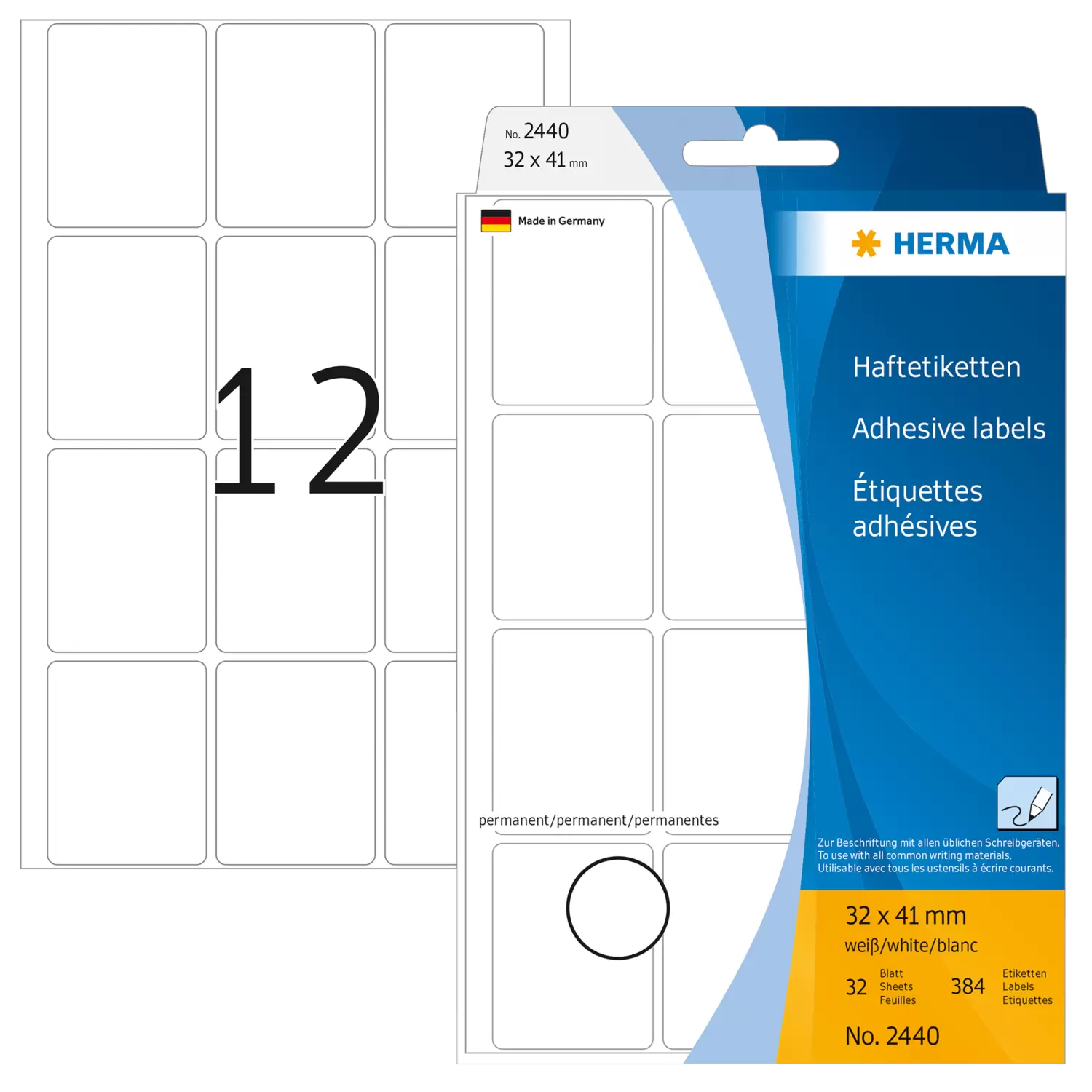 Inhoud 384 Etiketten / 32 Vel