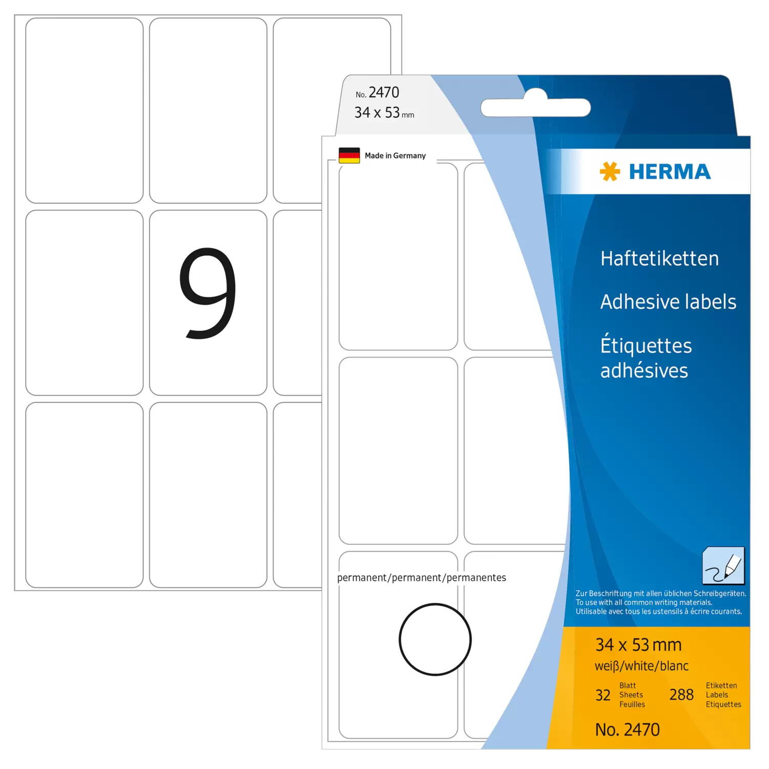 Multipurpose-etiketten, 34 x 53 mm, wit, permanent hechtend, om met de hand te beschrijven