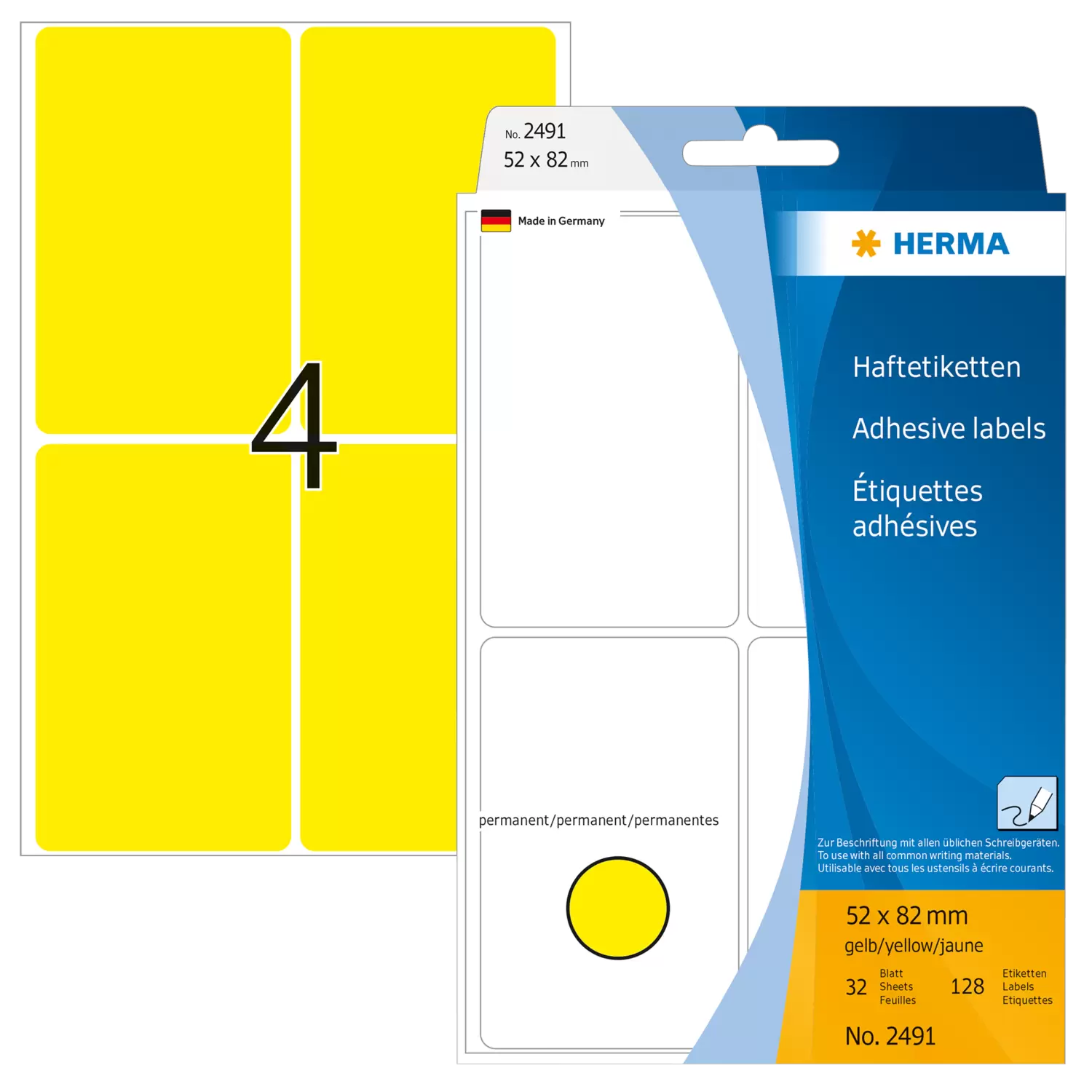 Multipurpose-etiketten, 52 x 82 mm, geel, permanent hechtend, om met de hand te beschrijven