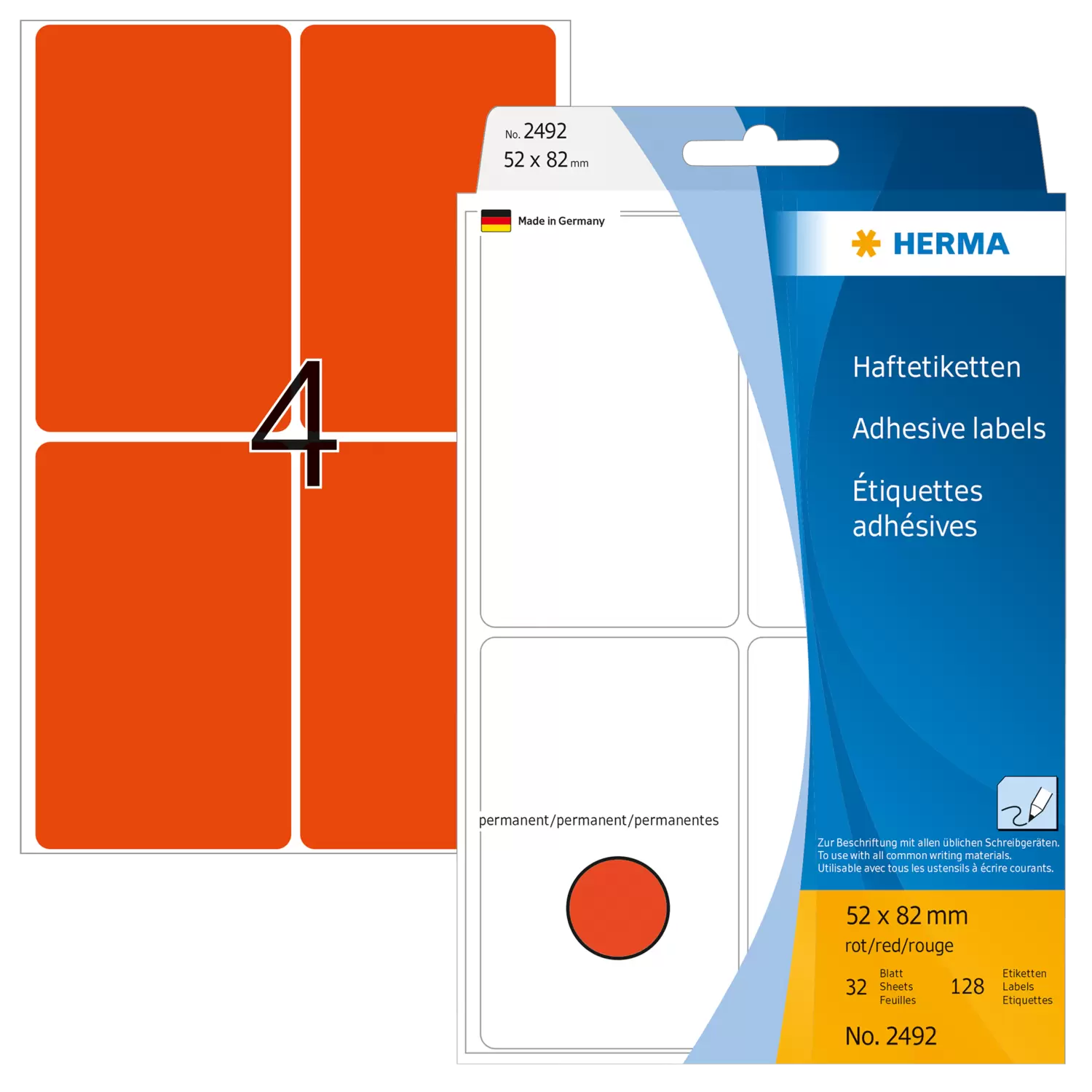 Multipurpose-etiketten, 52 x 82 mm, rood, permanent hechtend, om met de hand te beschrijven