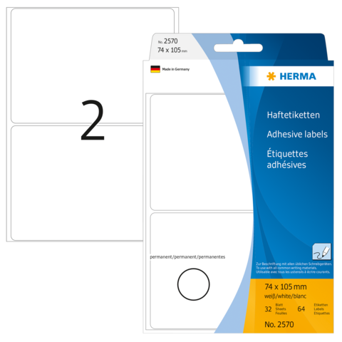 Multipurpose-etiketten, 74 x 105 mm, wit, permanent hechtend, om met de hand te beschrijven