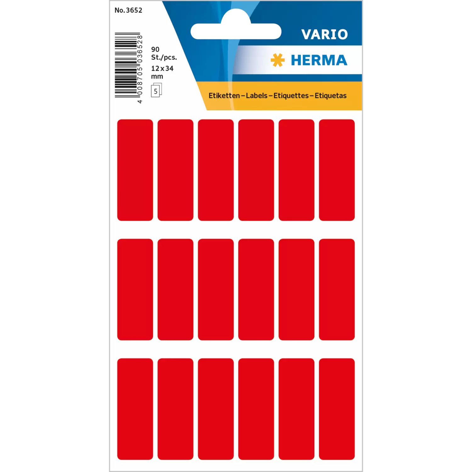 Artikelnr.3650 Formaat12x34 mm Inhoud126 etiketten / 7 vel