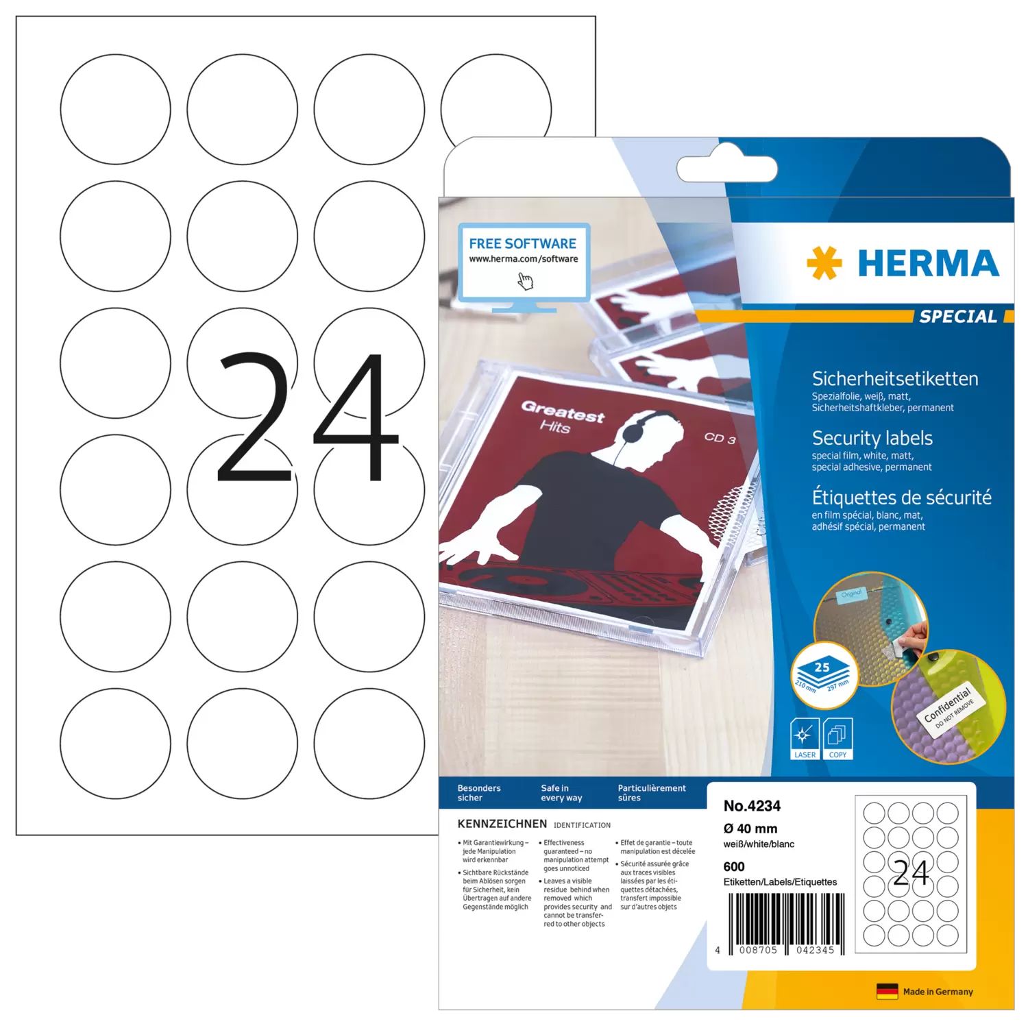 Veiligheidsetiketten, van speciale folie tegen manipulatie, A4, Ø 40 mm, extreem sterk hechtend